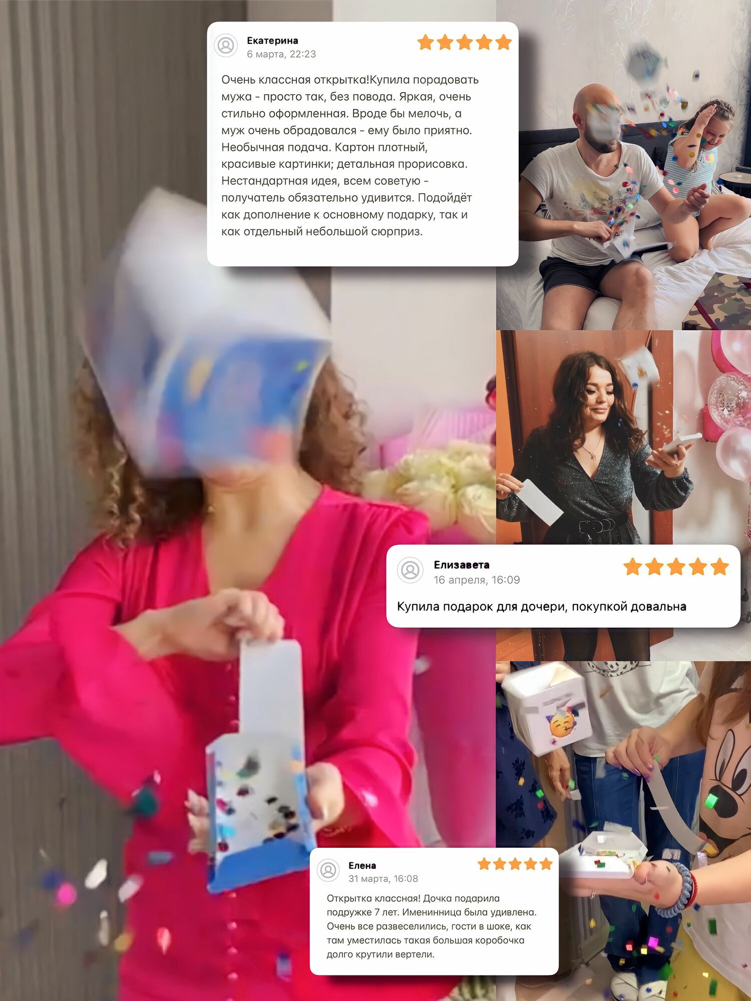 Ниже Вы можете прочитать отзывы на Подарочная бум-открытка с конфетти "Поздравляю!" - универсальная открытка на праздник или событие, юбилей, День рождения - Notta & Belle, ознакомится с подробными характеристиками, посмотреть интересные обзоры и фотографии на Подарочная бум-открытка с конфетти "Поздравляю!" - универсальная открытка на праздник или событие, юбилей, День рождения - Notta & Belle.