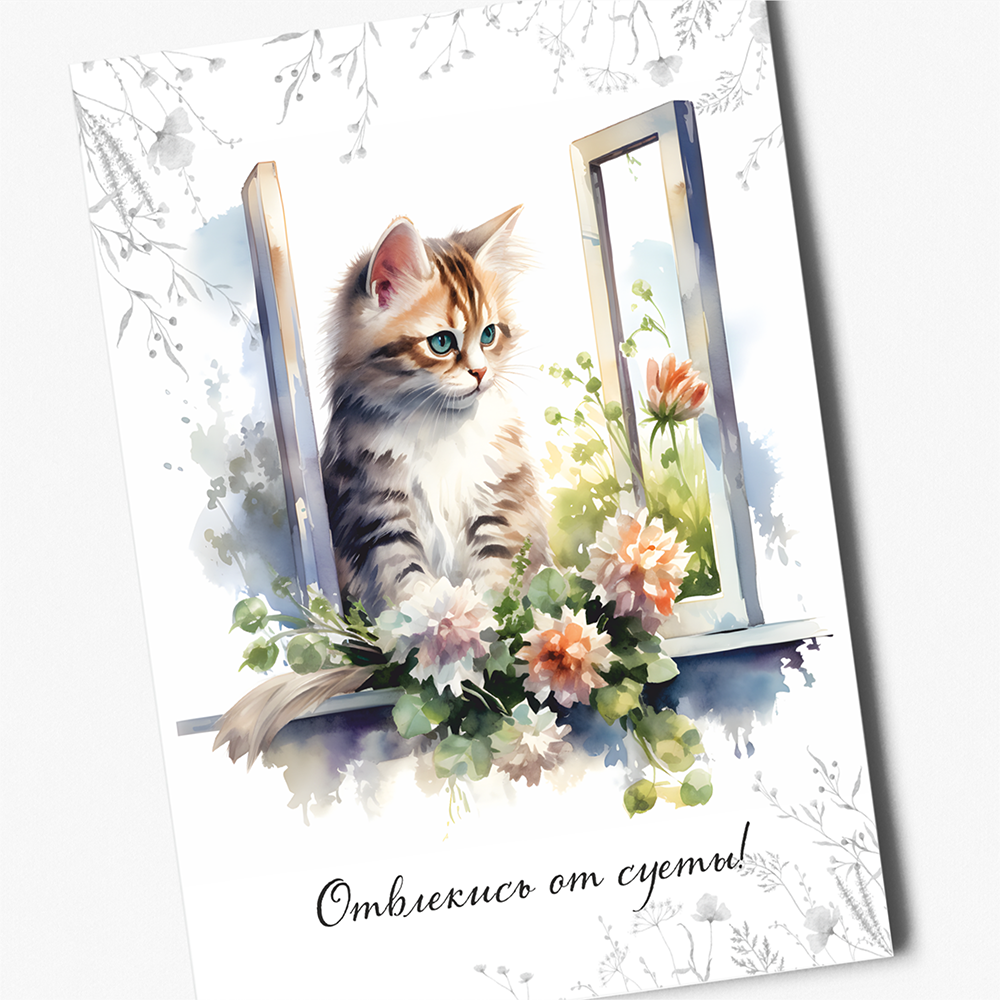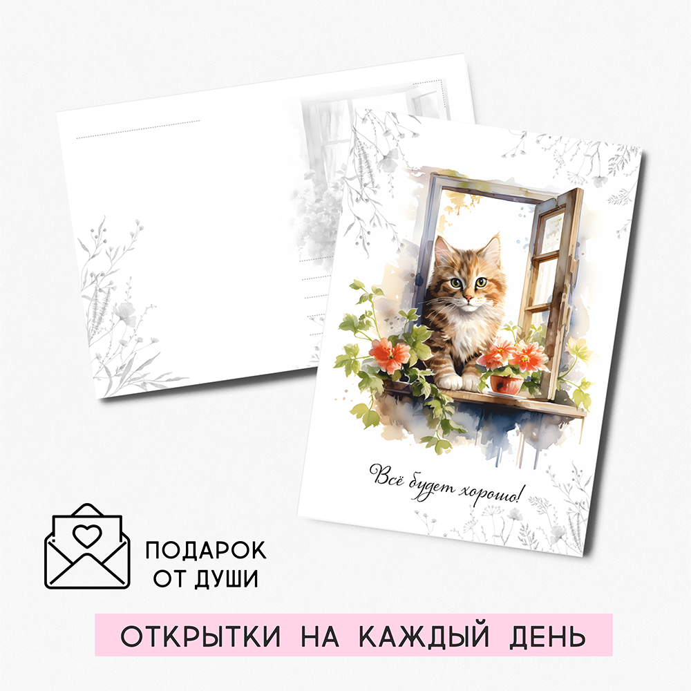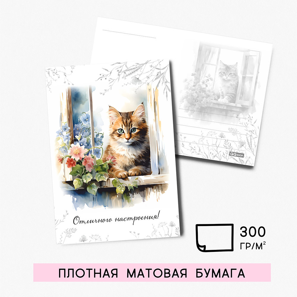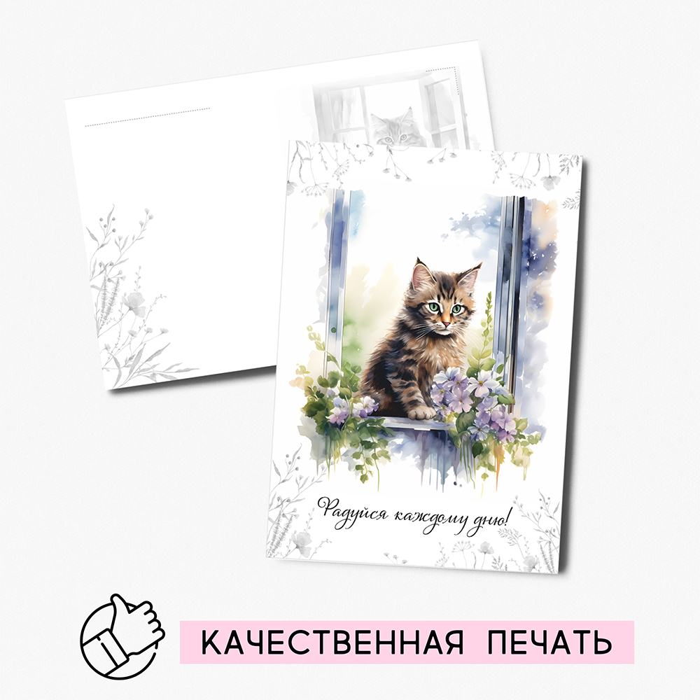 Набор открыток "Котята на окошке" с крафт конвертами, 8 штук, размер А6 QQ_Shop интересное: