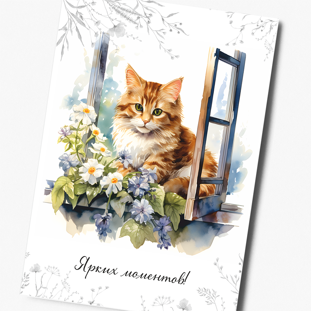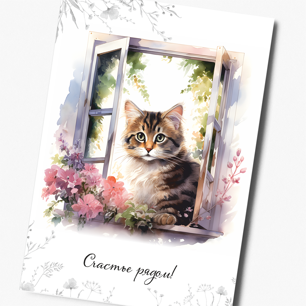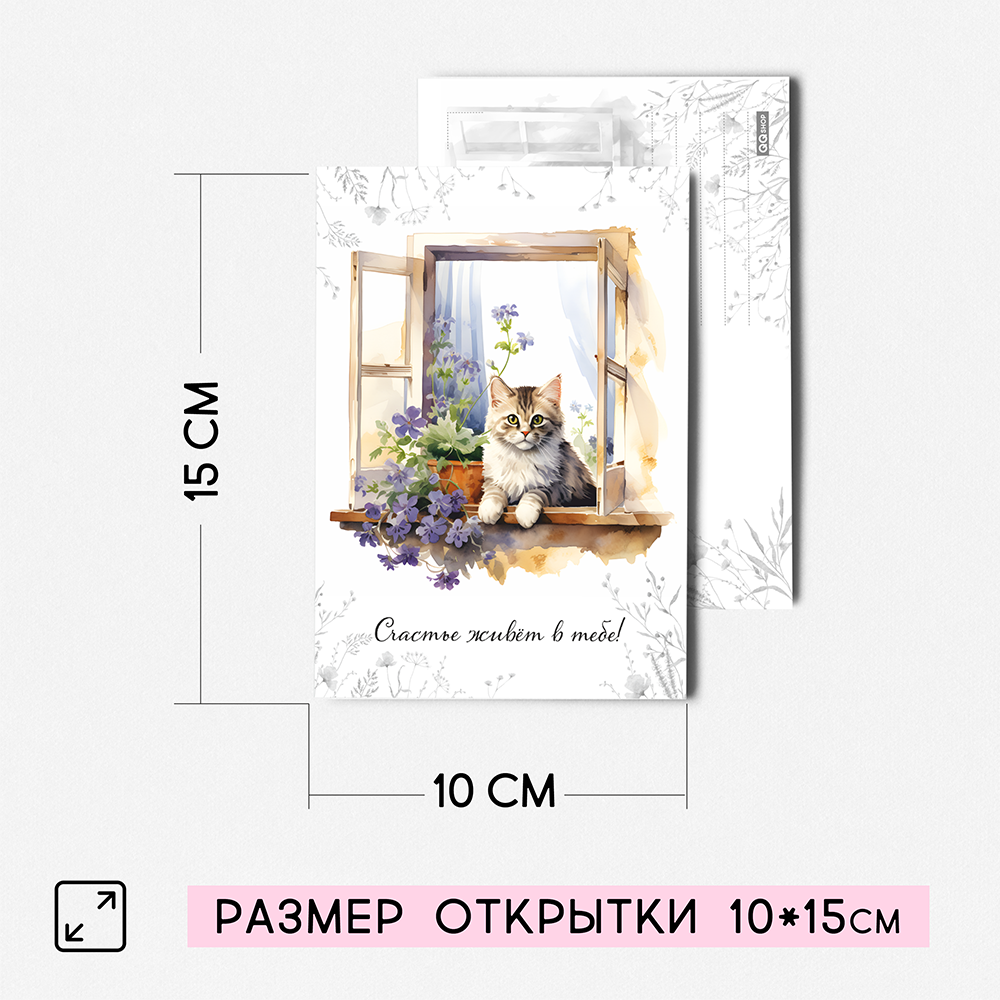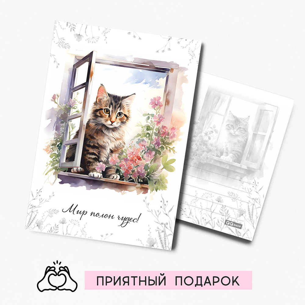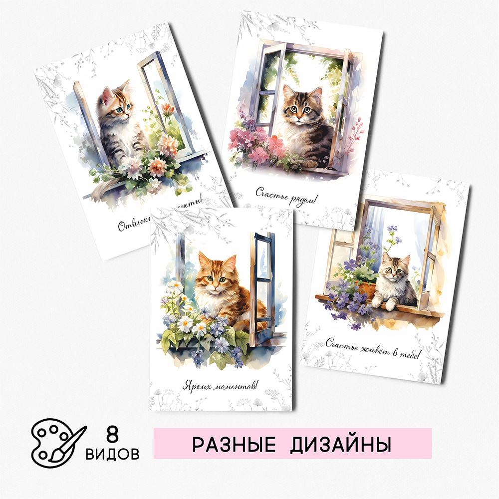 Купить Набор открыток "Котята на окошке" с крафт конвертами, 8 штук, размер А6 QQ_Shop