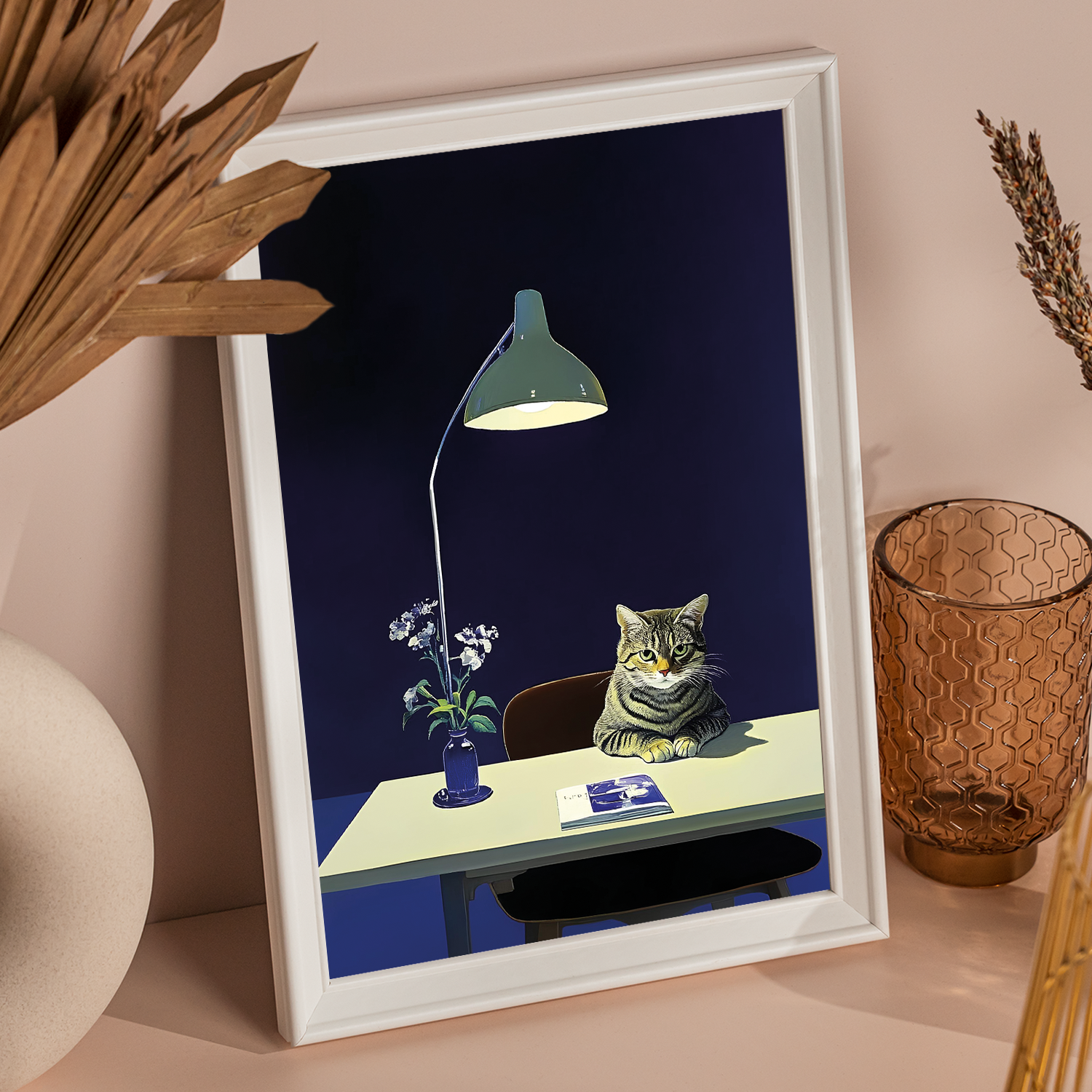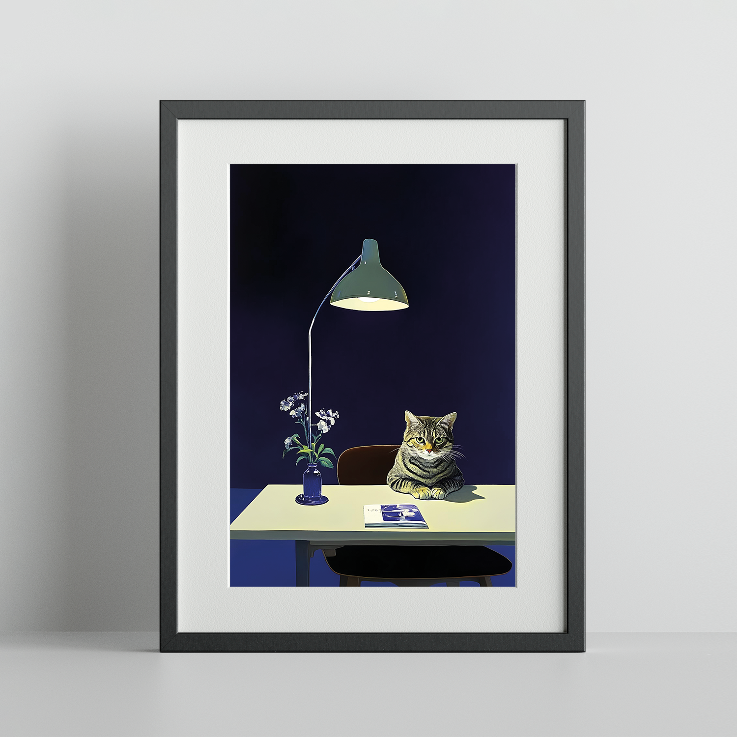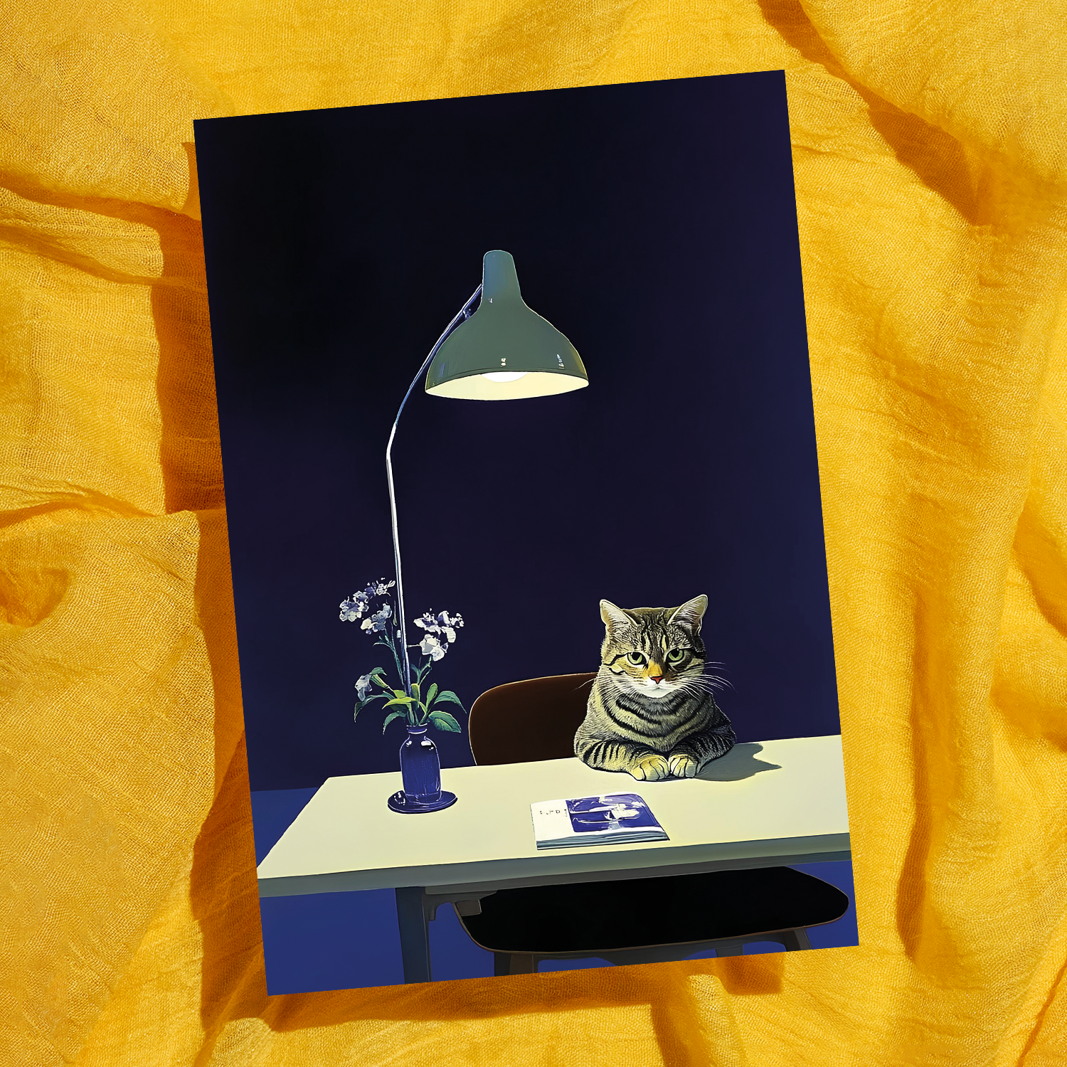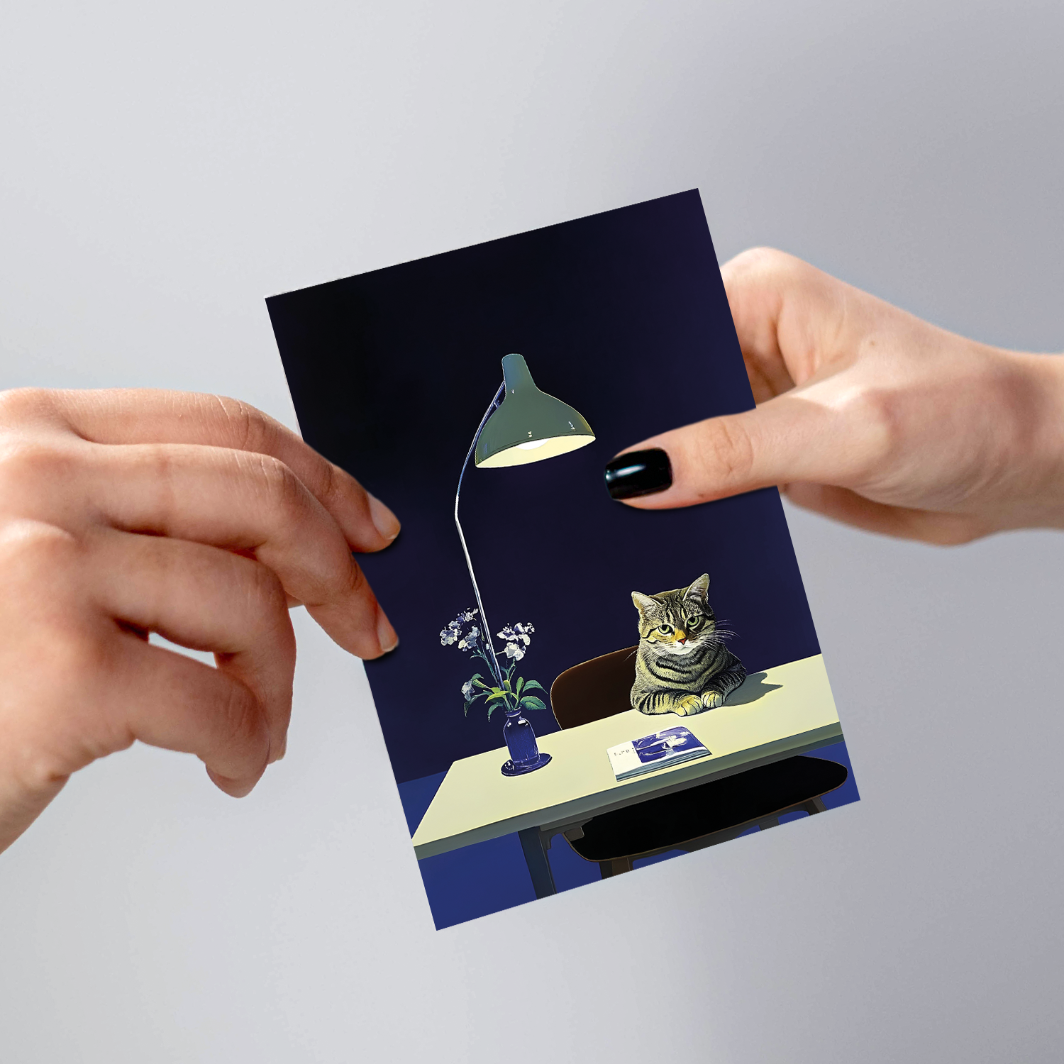 Купить Дизайнерская открытка "Кот в офисе" (10х15см, плотная бумага, авторский креатив)