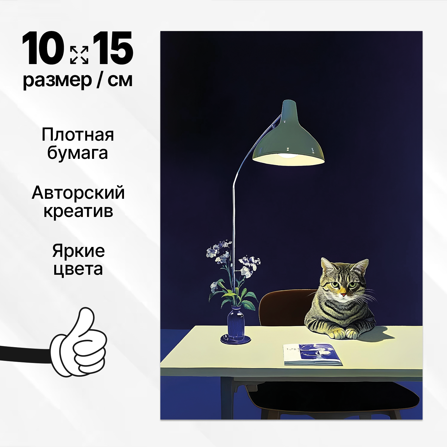 Дизайнерская открытка "Кот в офисе" (10х15см, плотная бумага, авторский креатив) интересное: