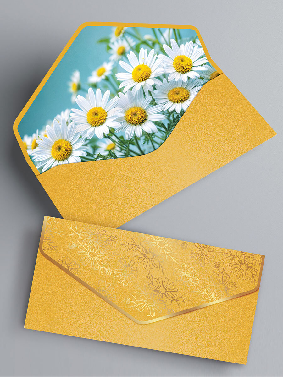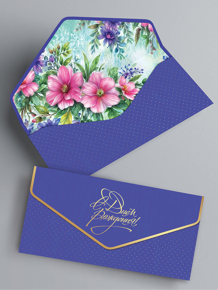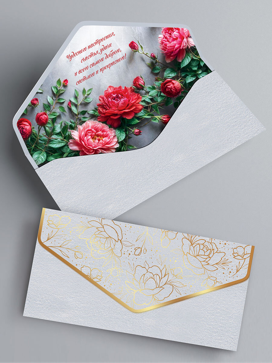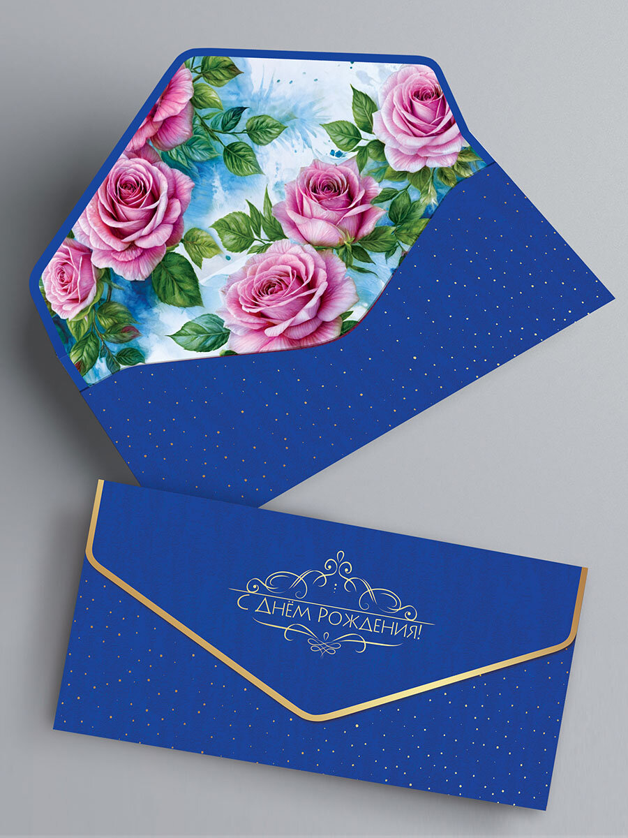 Конверт для денег, набор конвертов c фольгой и матовым лаком soft touch, 5 шт.