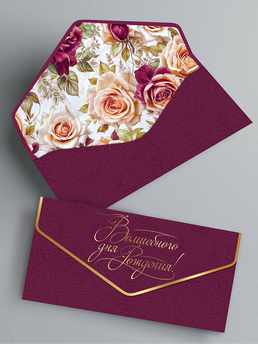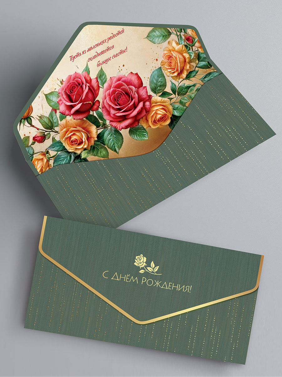 Конверт для денег, набор конвертов для денег c фольгой и матовым лаком soft touch, 5шт.