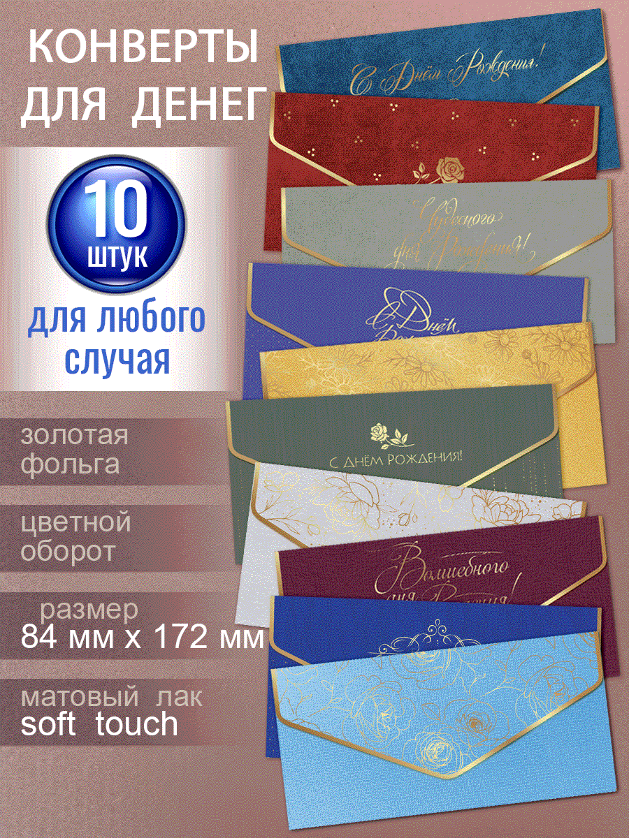 Конверт для денег, набор новогодних конвертов c фольгой и матовым лаком soft touch, 10 шт. интересное:
