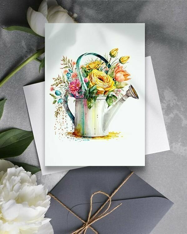 Набор открыток Акварельные Цветы 2, 10.5 см х 15 см, 4 шт, на подарок и в коллекцию