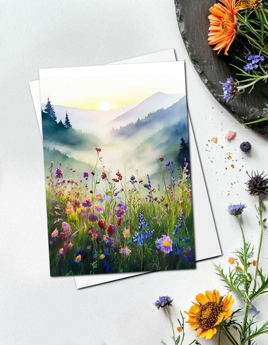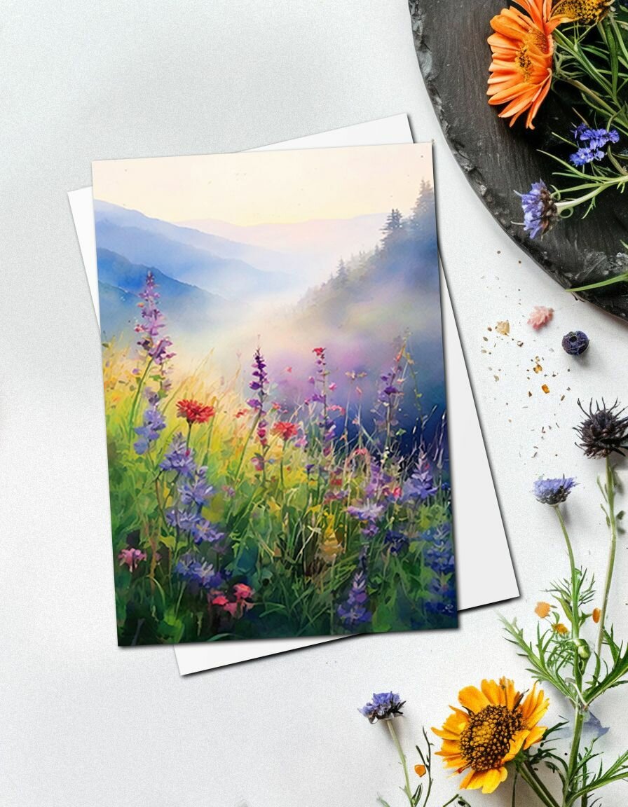Набор открыток "Пейзаж с полевыми цветами", 10.5 см х 15 см, 4 шт, на подарок и в коллекцию