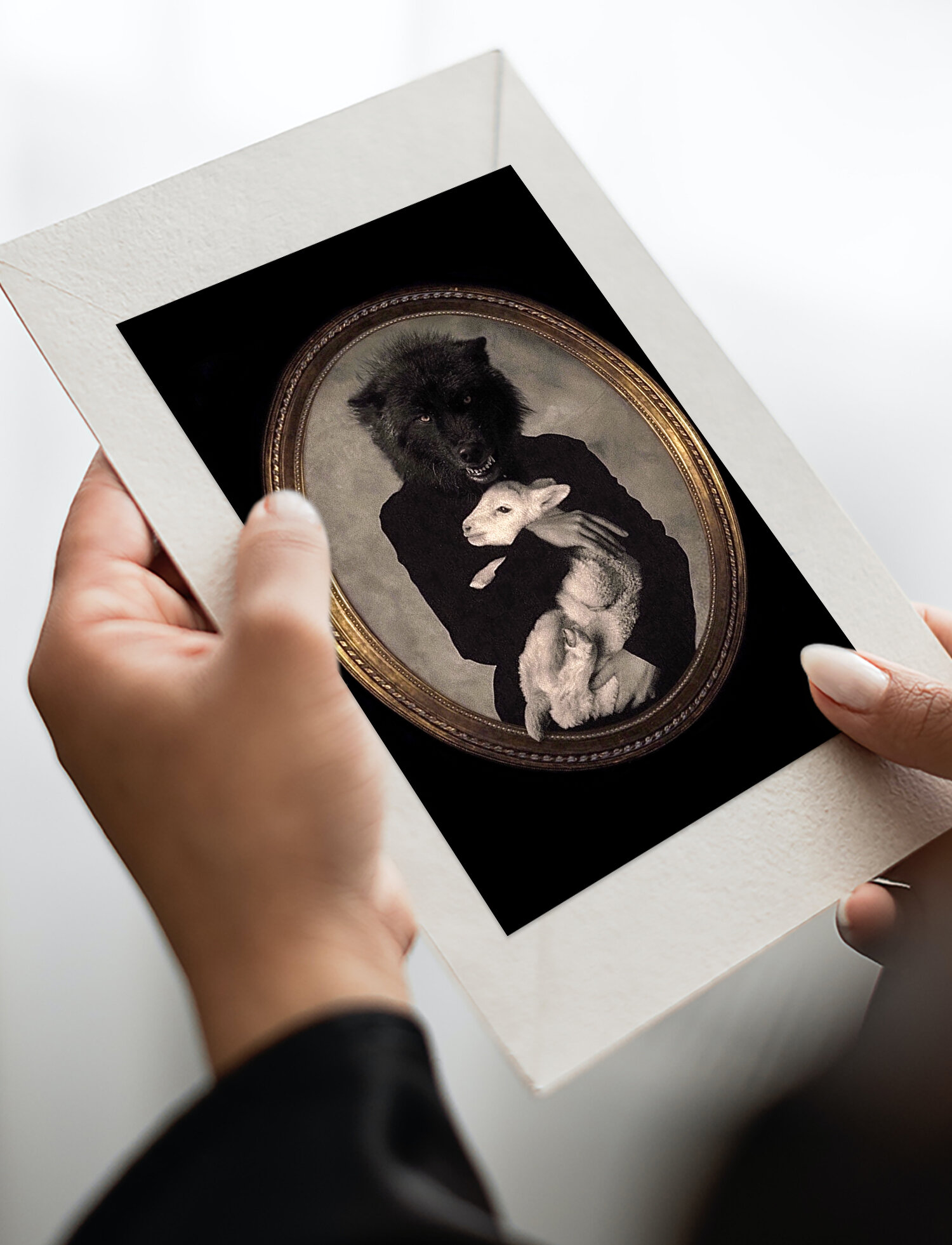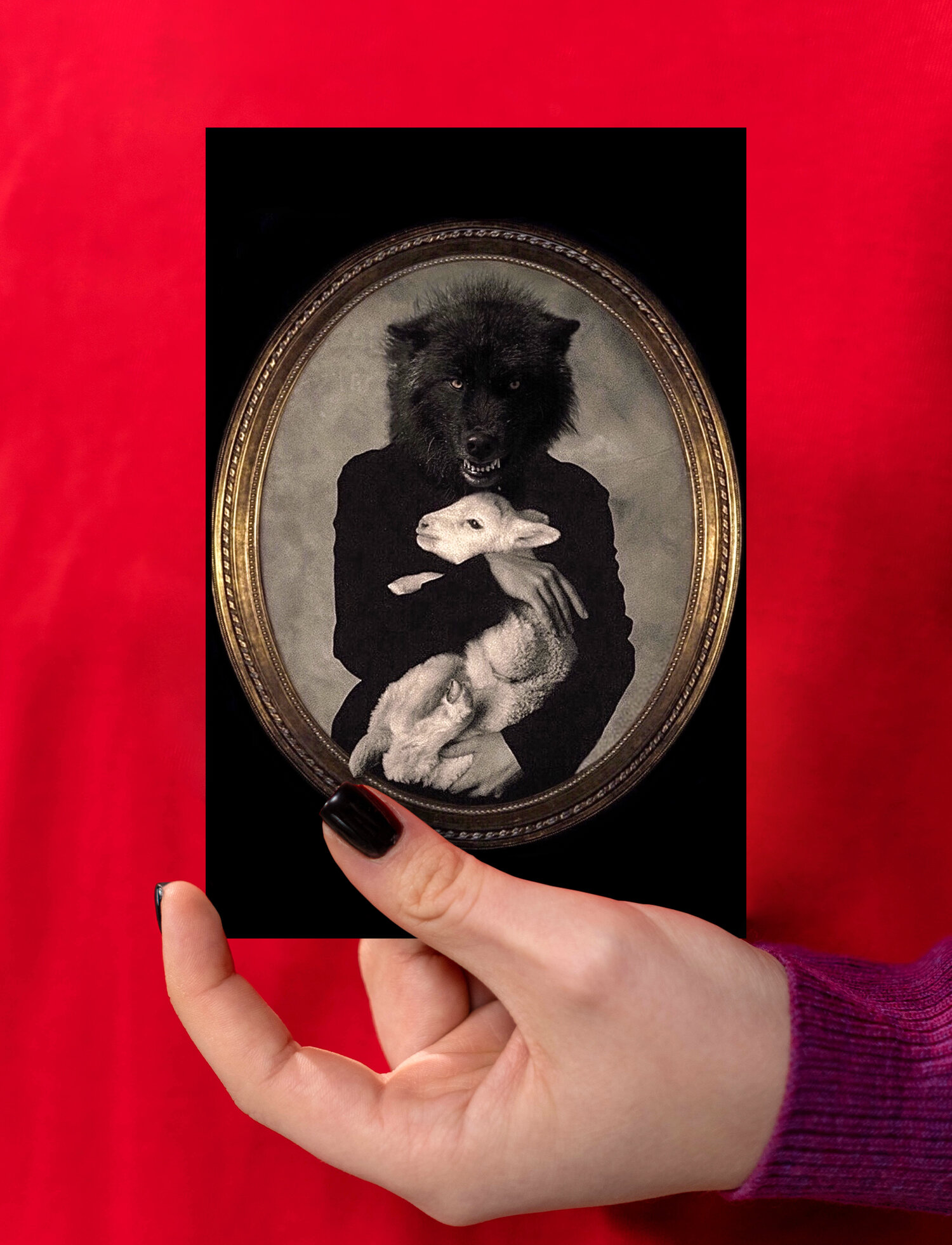 Купить "Волк и овечка" открытка (подходит под рамку, размер 10х15см)