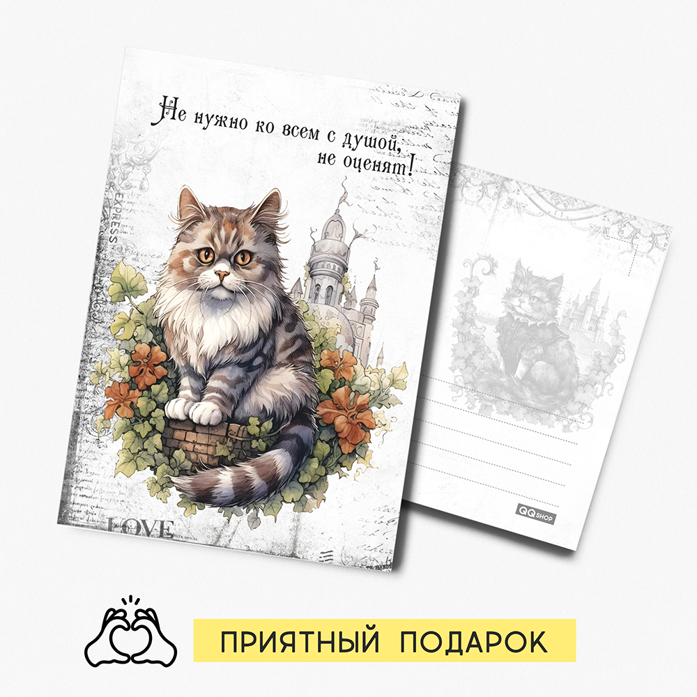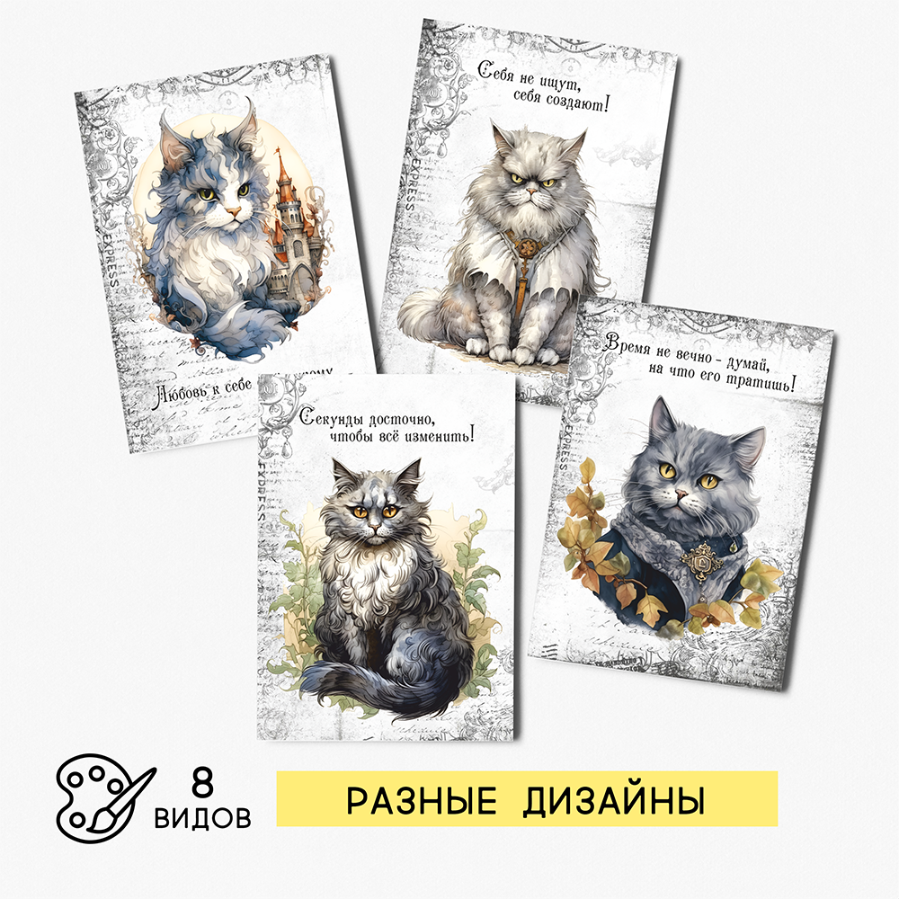 Набор открыток "Кошки. Готика" с крафт конвертами, 8 штук, размер А6 QQ_Shop интересное: