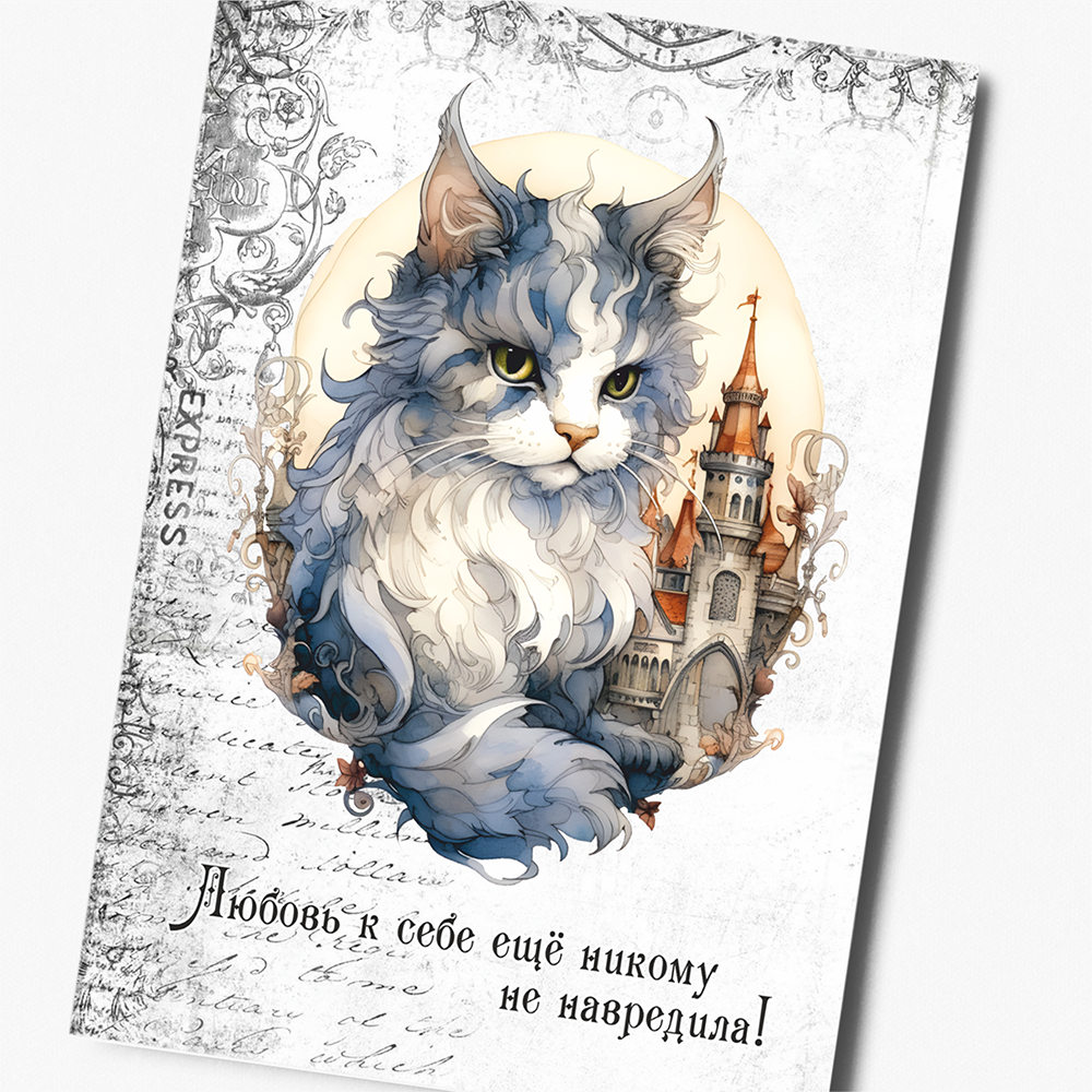 Дизайнерская открытка "Мяу" (авторский креатив, стихотворение)