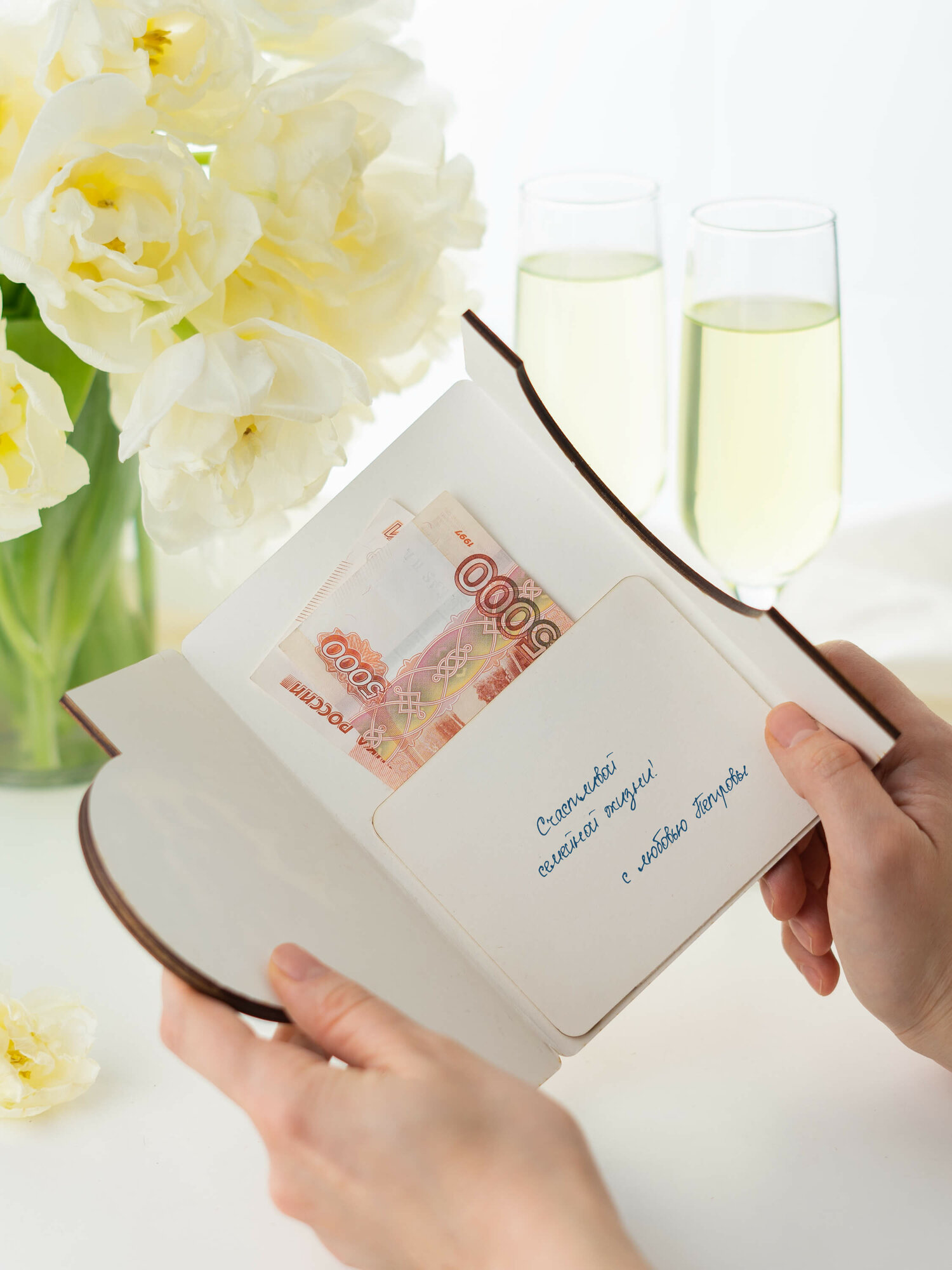 Деревянная открытка для денег на свадьбу l Купюрница из дерева, 17х10 см