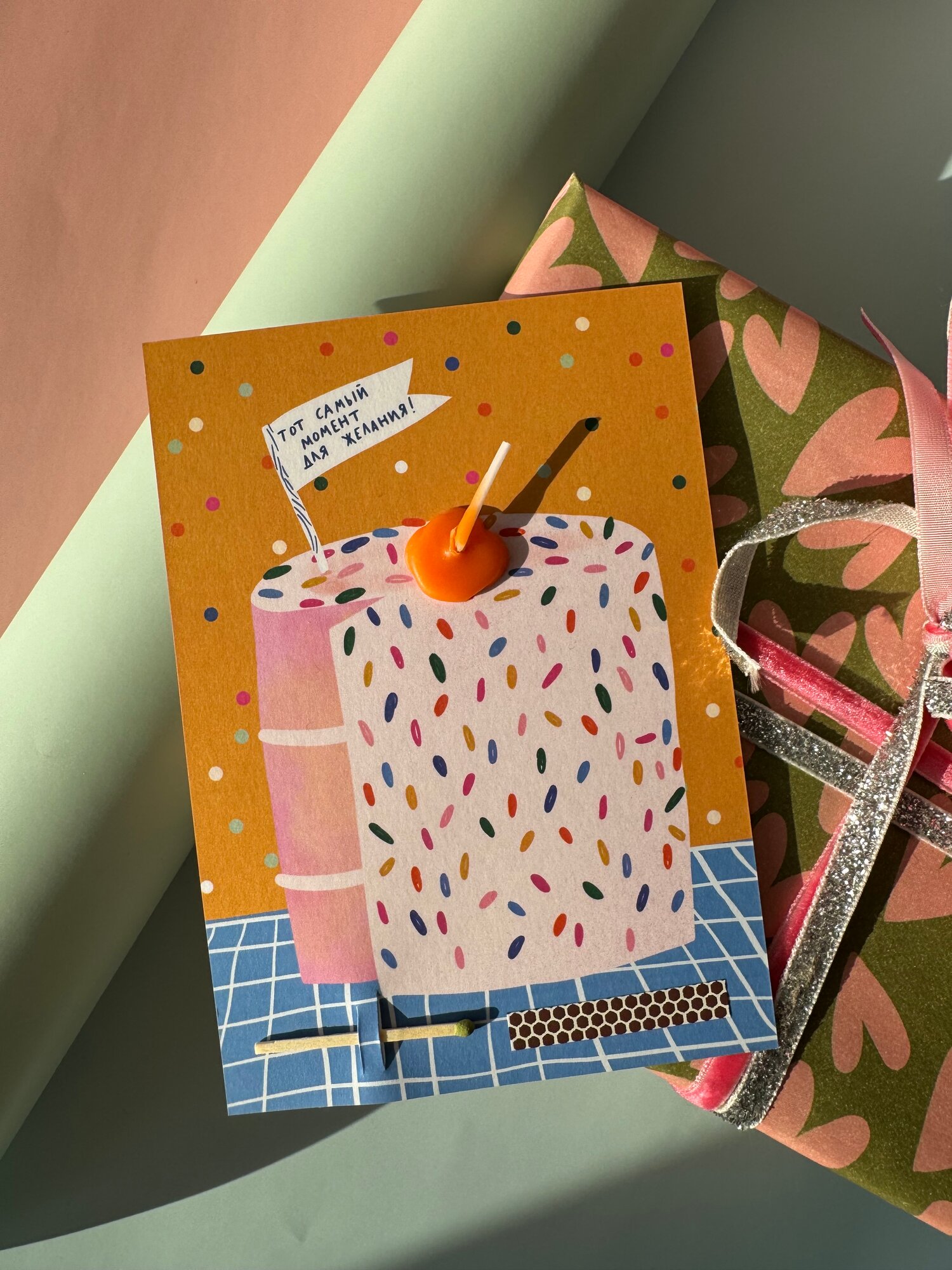 Купить Открытка свечка "Тот самый момент" от Вьюнчик, с крафтовым конвертом, 14,8х10,5 см (А6), открытка на день рождения