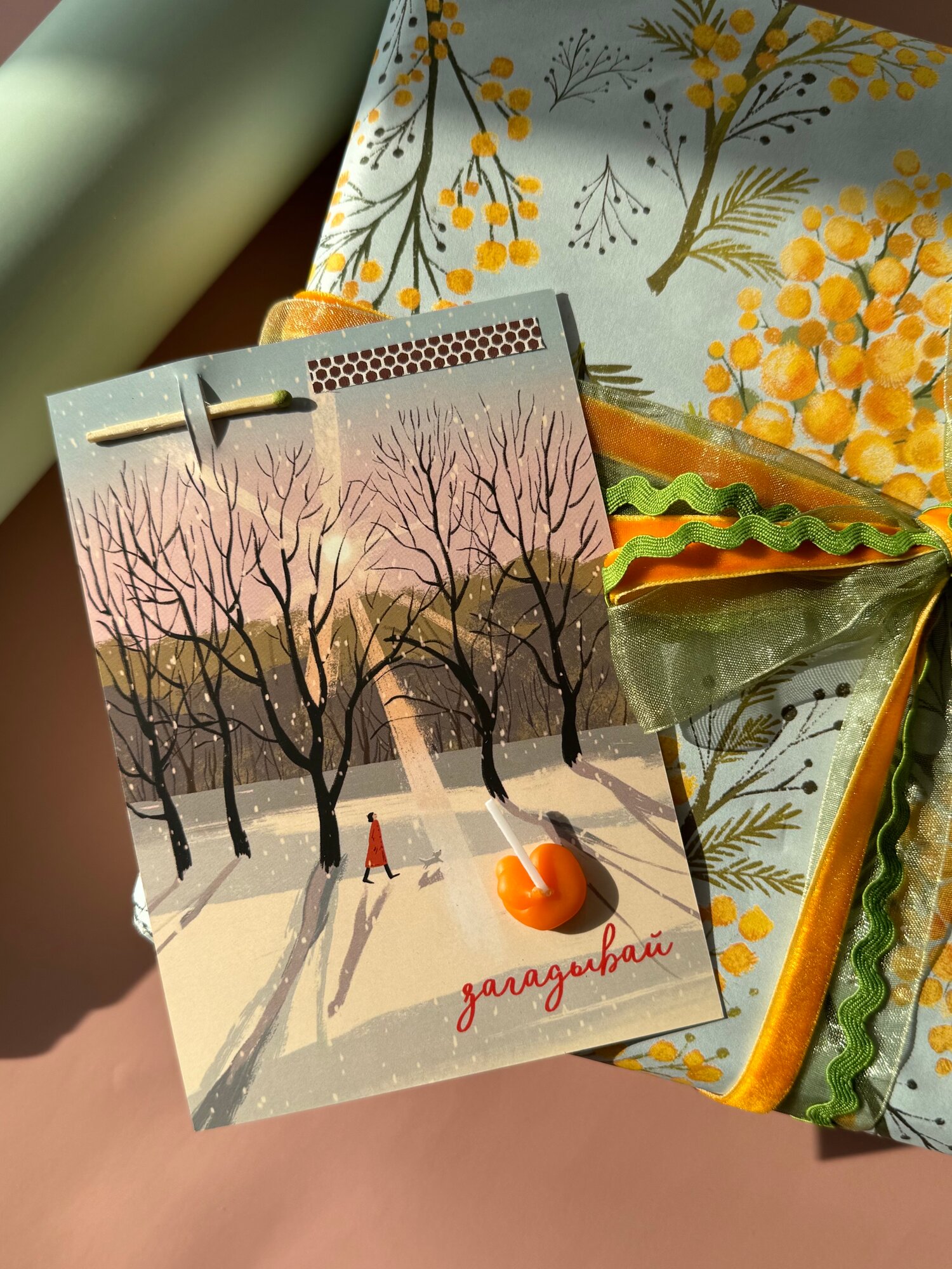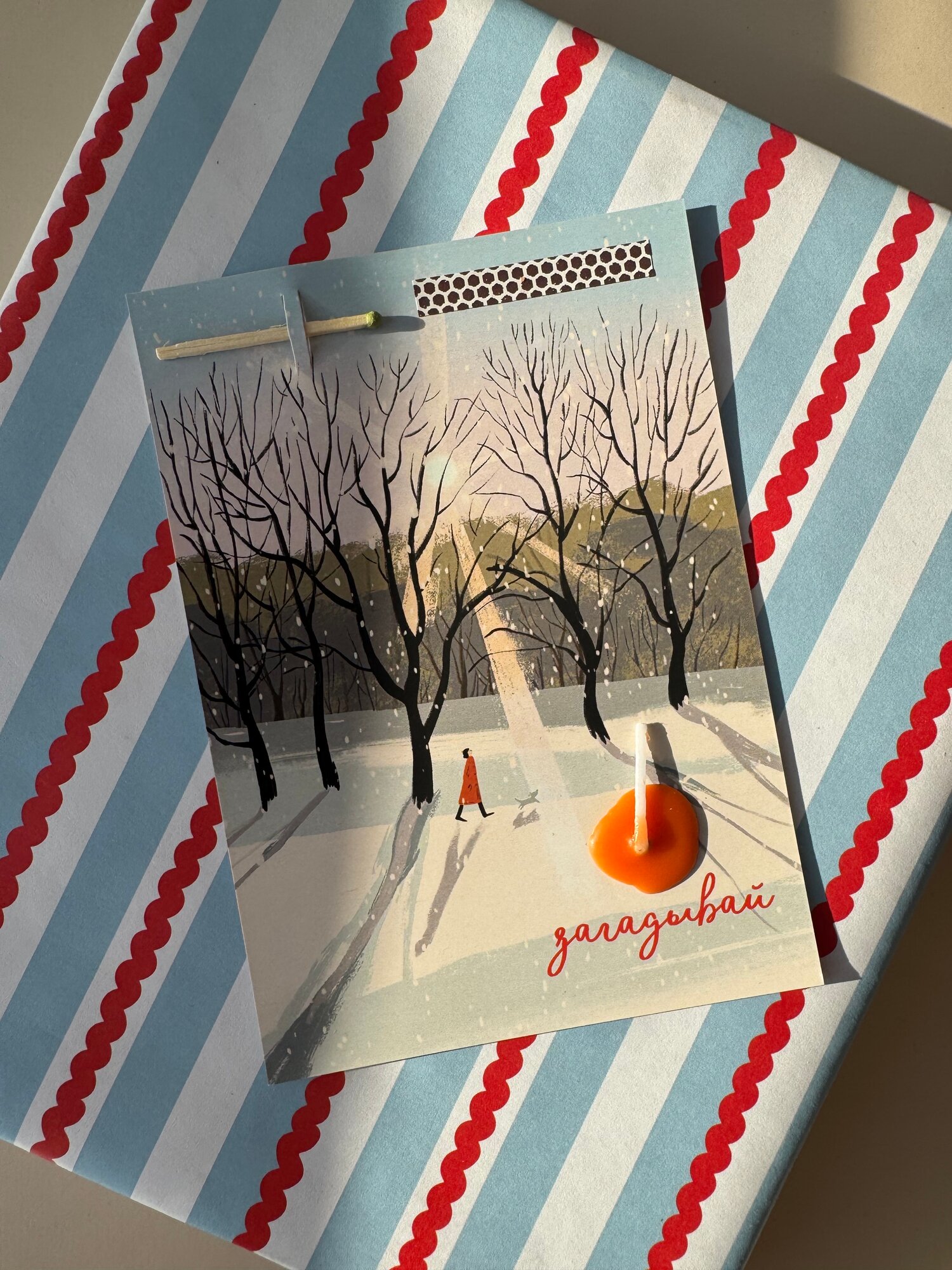 Купить Открытка свечка "Прогулка" от Вьюнчик, с крафтовым конвертом, 14,8х10,5 см (А6)