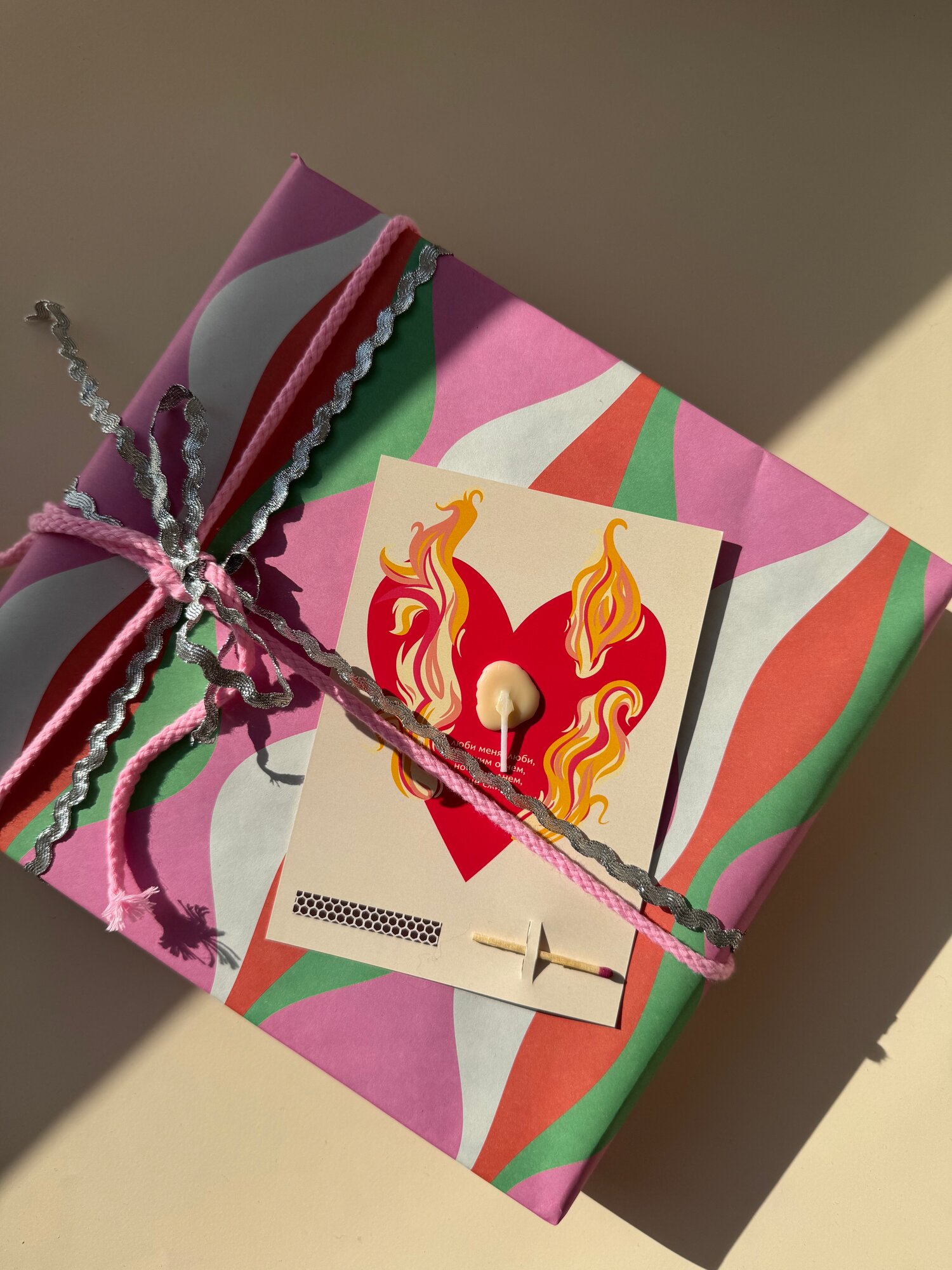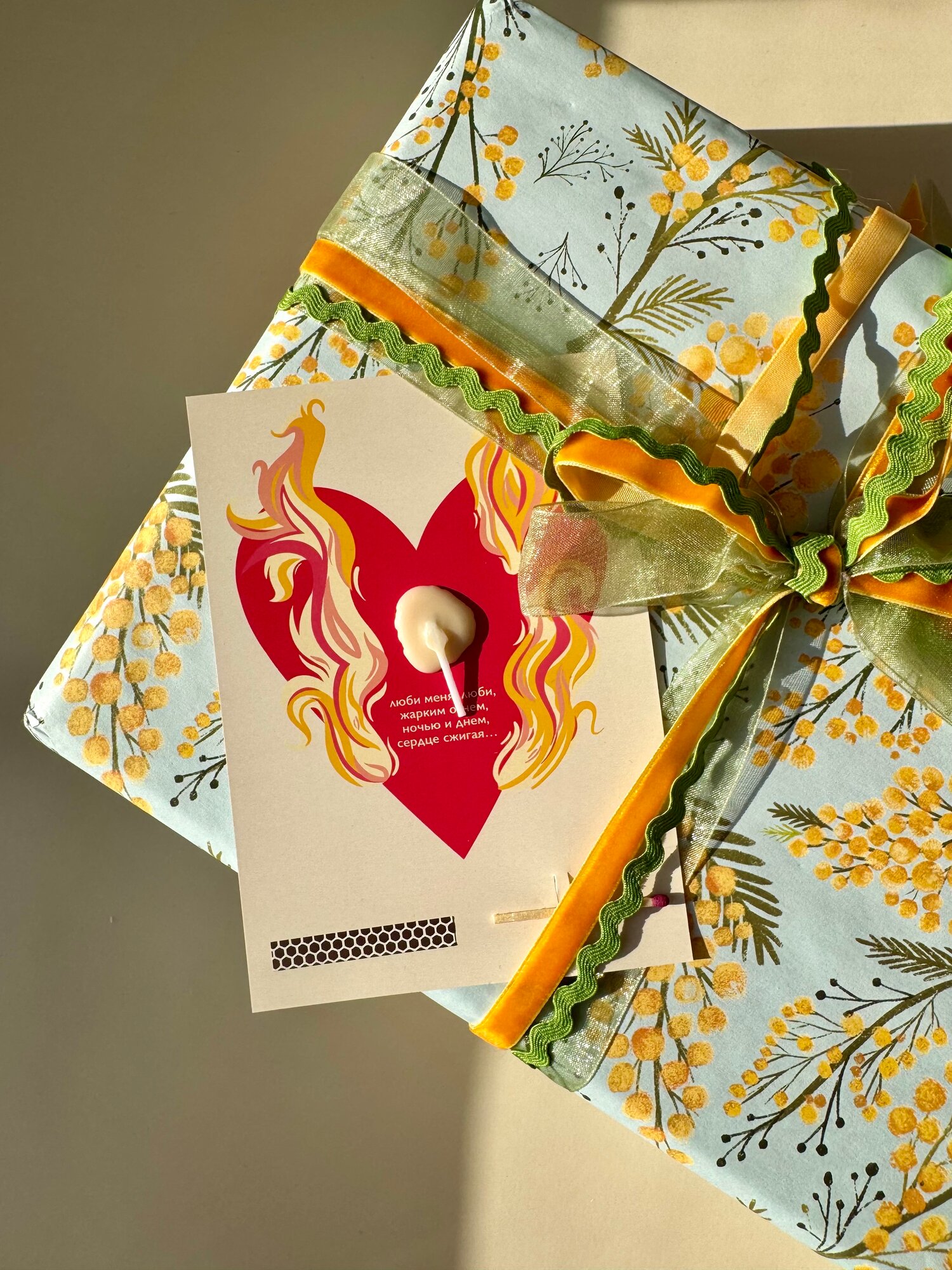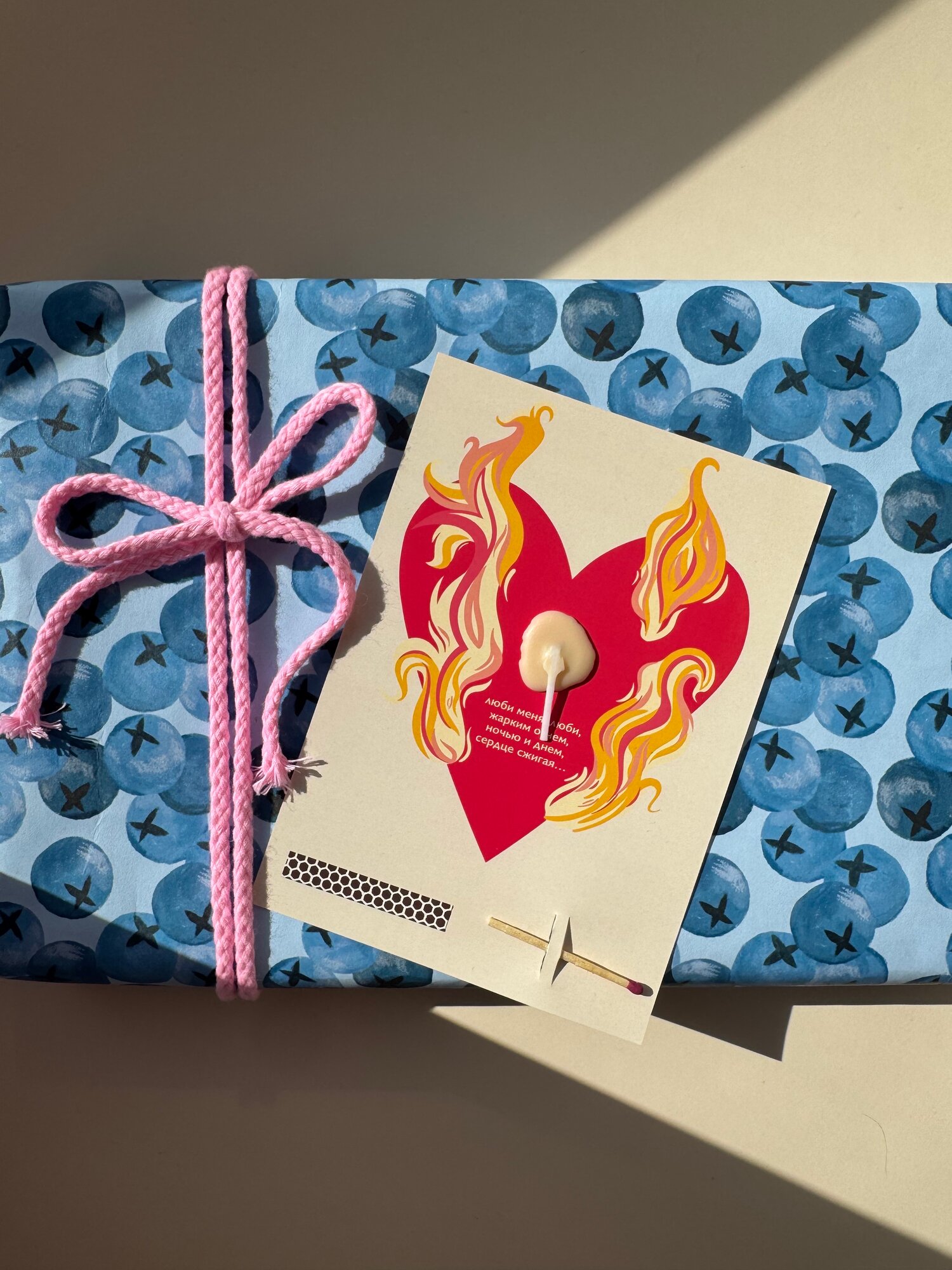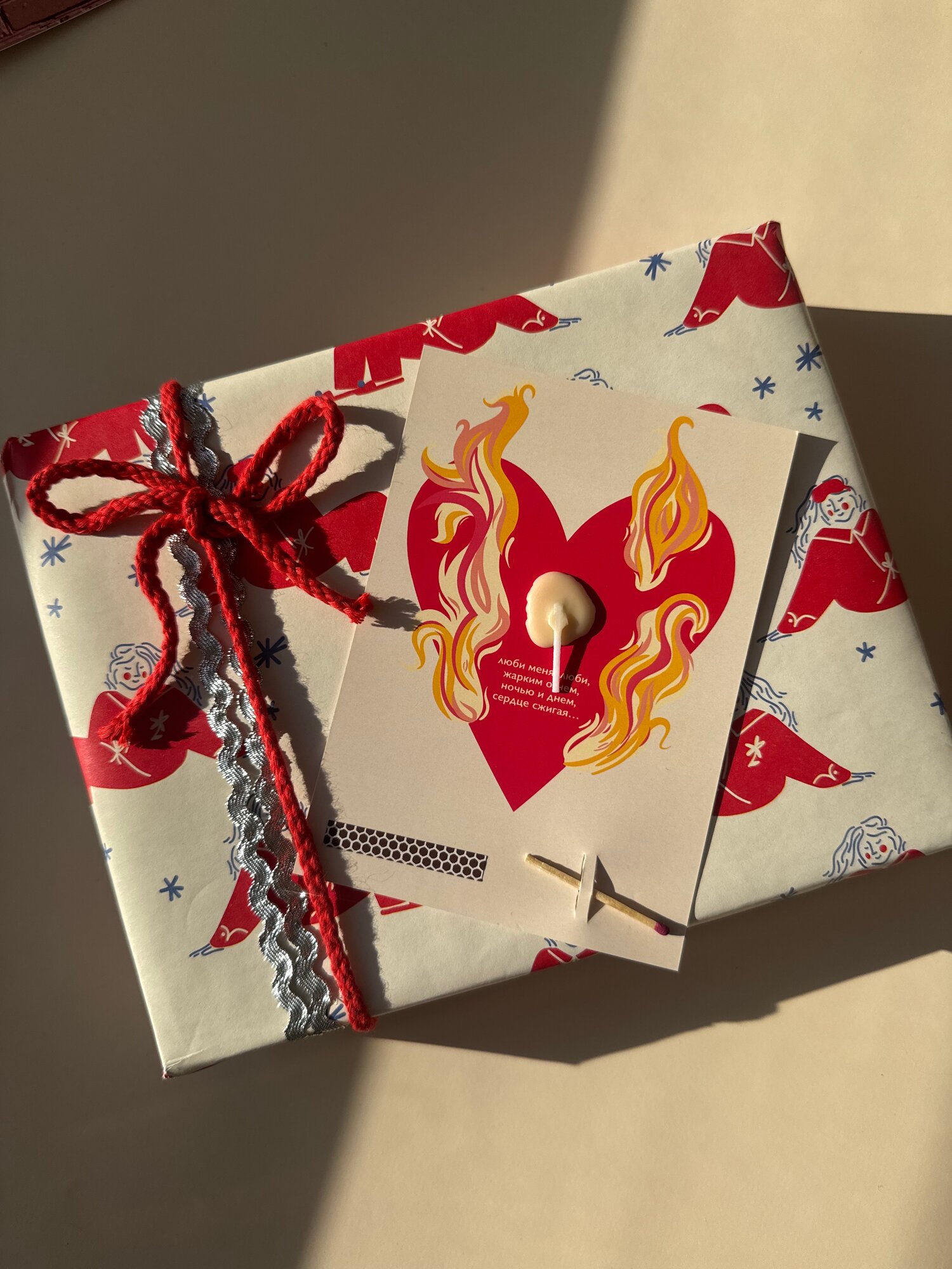 Купить Открытка свечка "Люби меня, люби" от Вьюнчик, с конвертом, 14,8х10,5 см (А6), стильная открытка о любви
