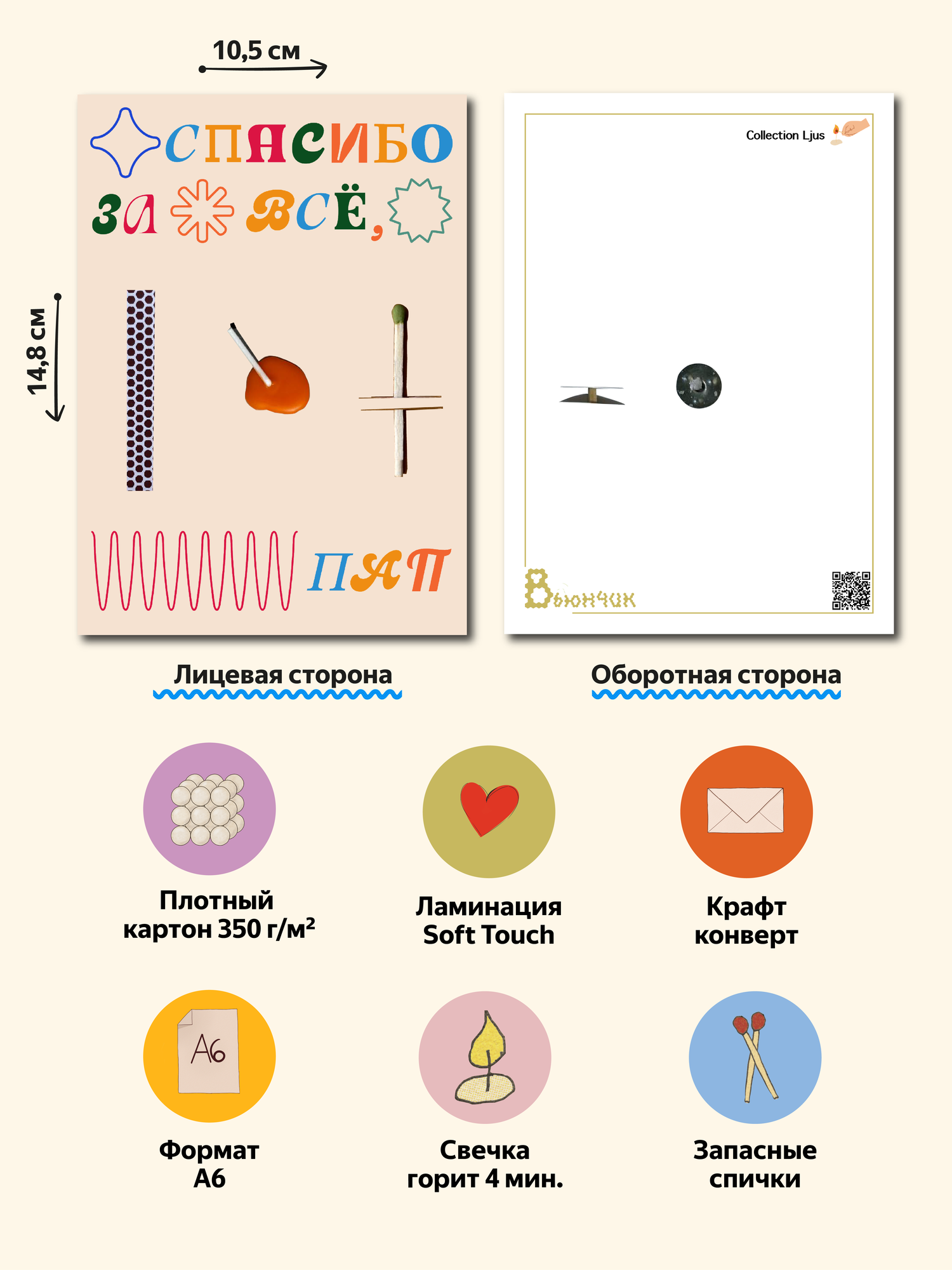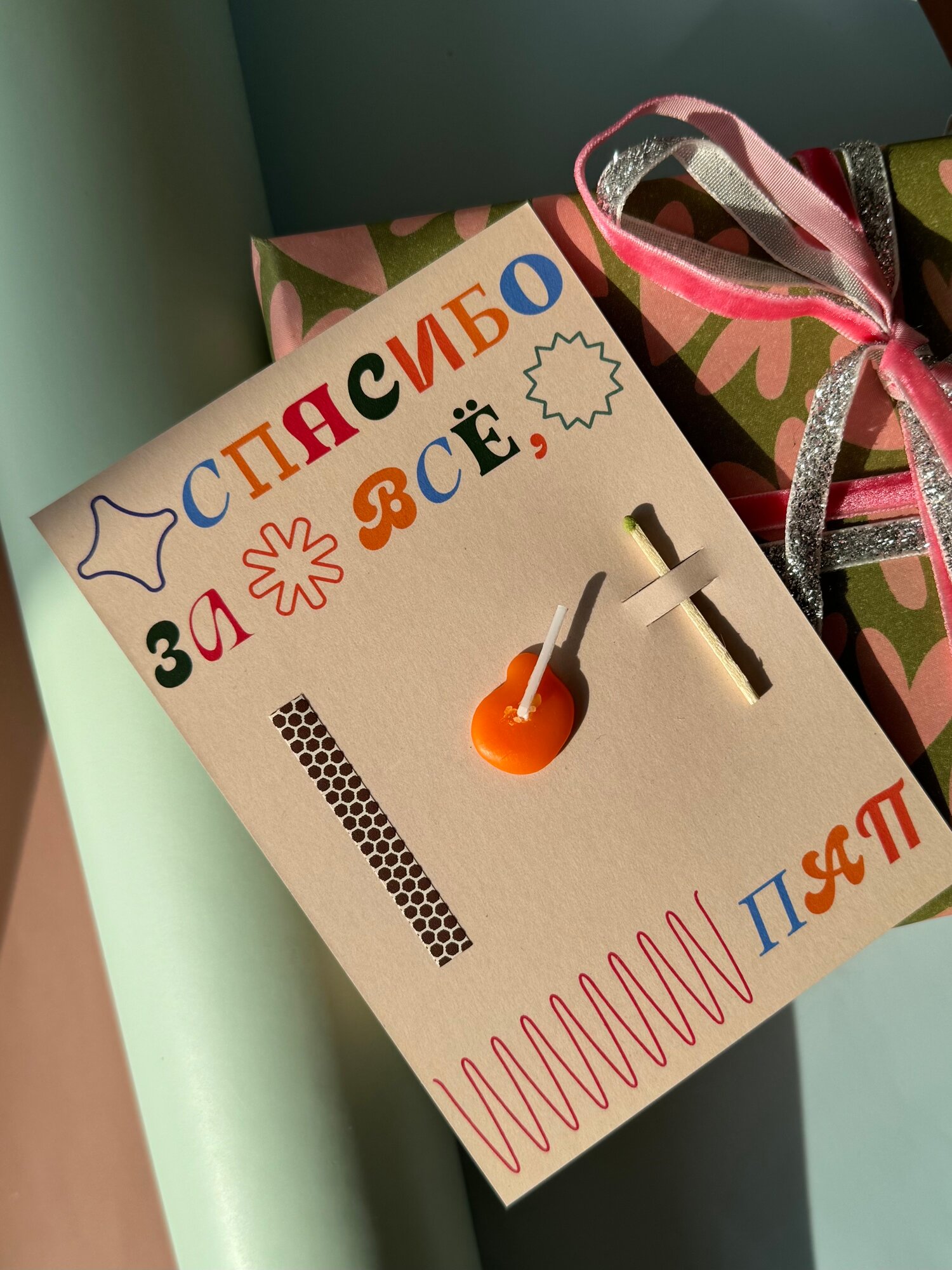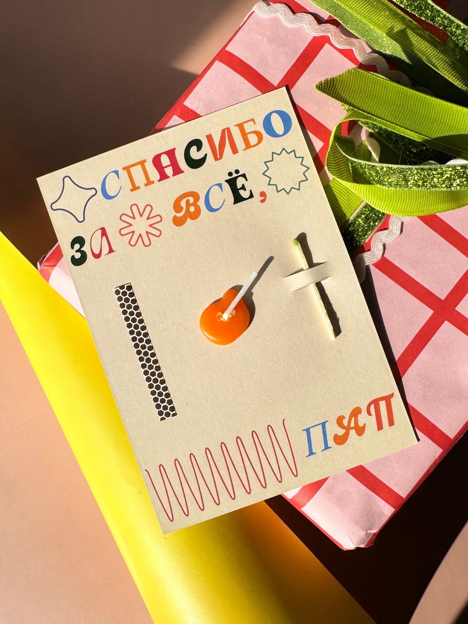 Купить Открытка свечка папе "Спасибо, пап" 14,8х10,5 см (А6), стильная открытка, поздравительная