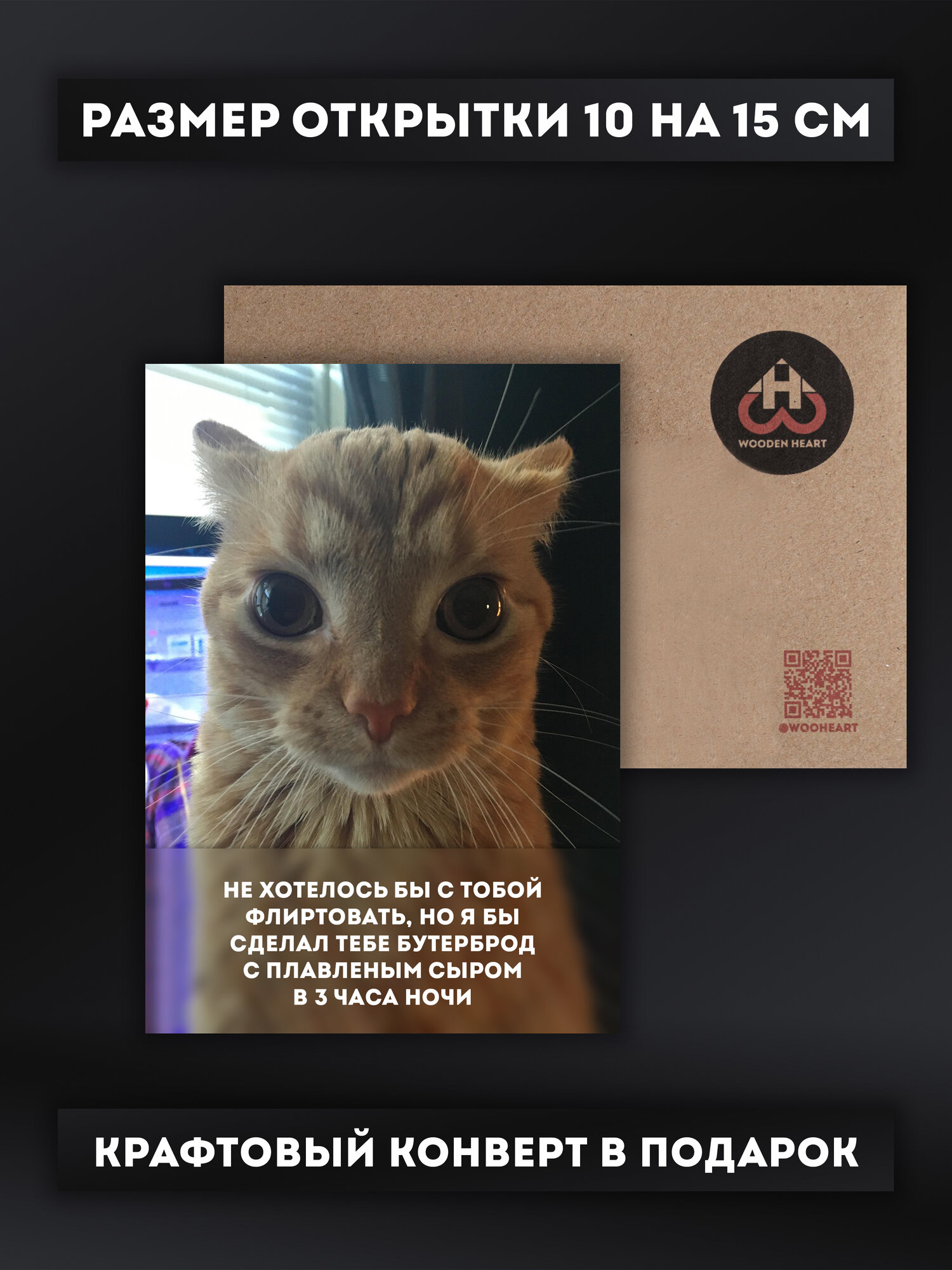 Дизайнерская открытка "Мяу" (авторский креатив, стихотворение)