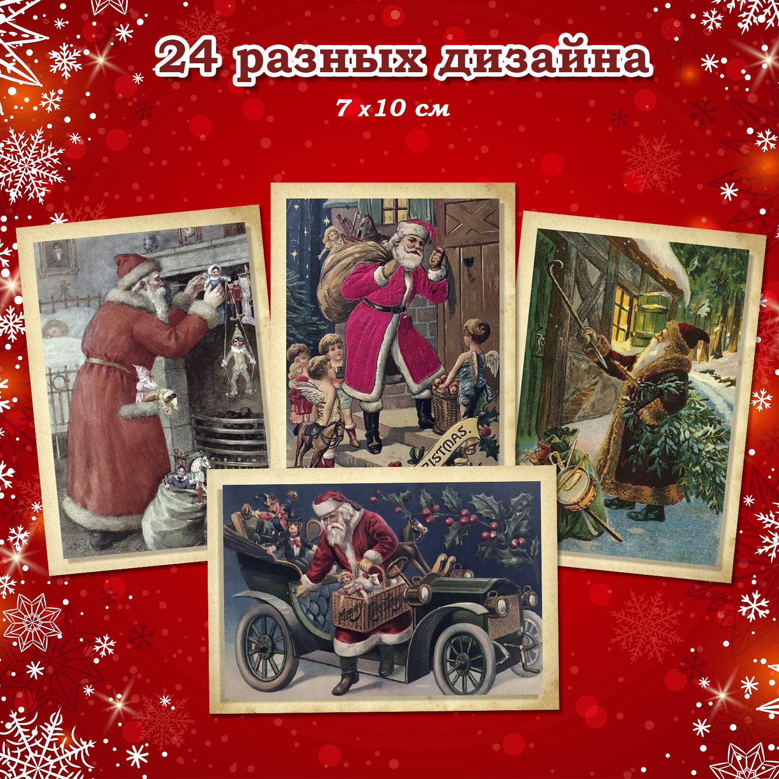 Купить Новогодние ретро открытки "Санта", набор 24 шт