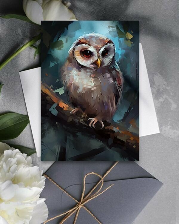 Набор открыток "Птицы Сова Сипуха 2", 10.5 см х 15 см, 4 шт, InspirationTime, на подарок и в коллекцию