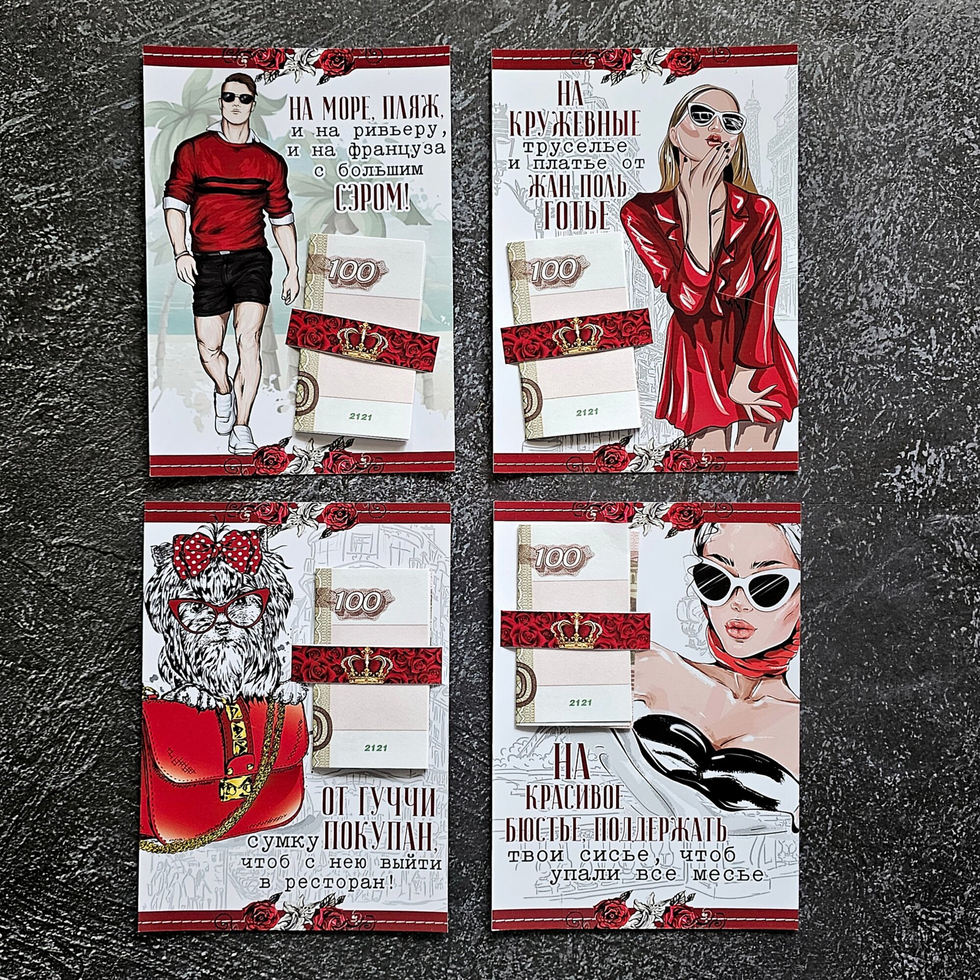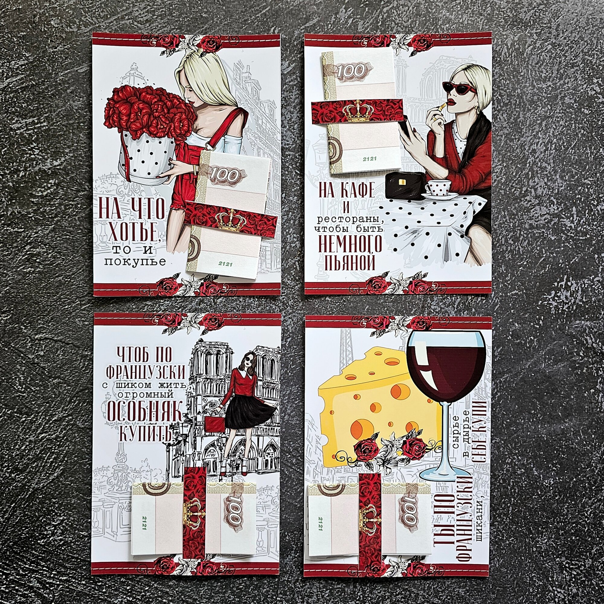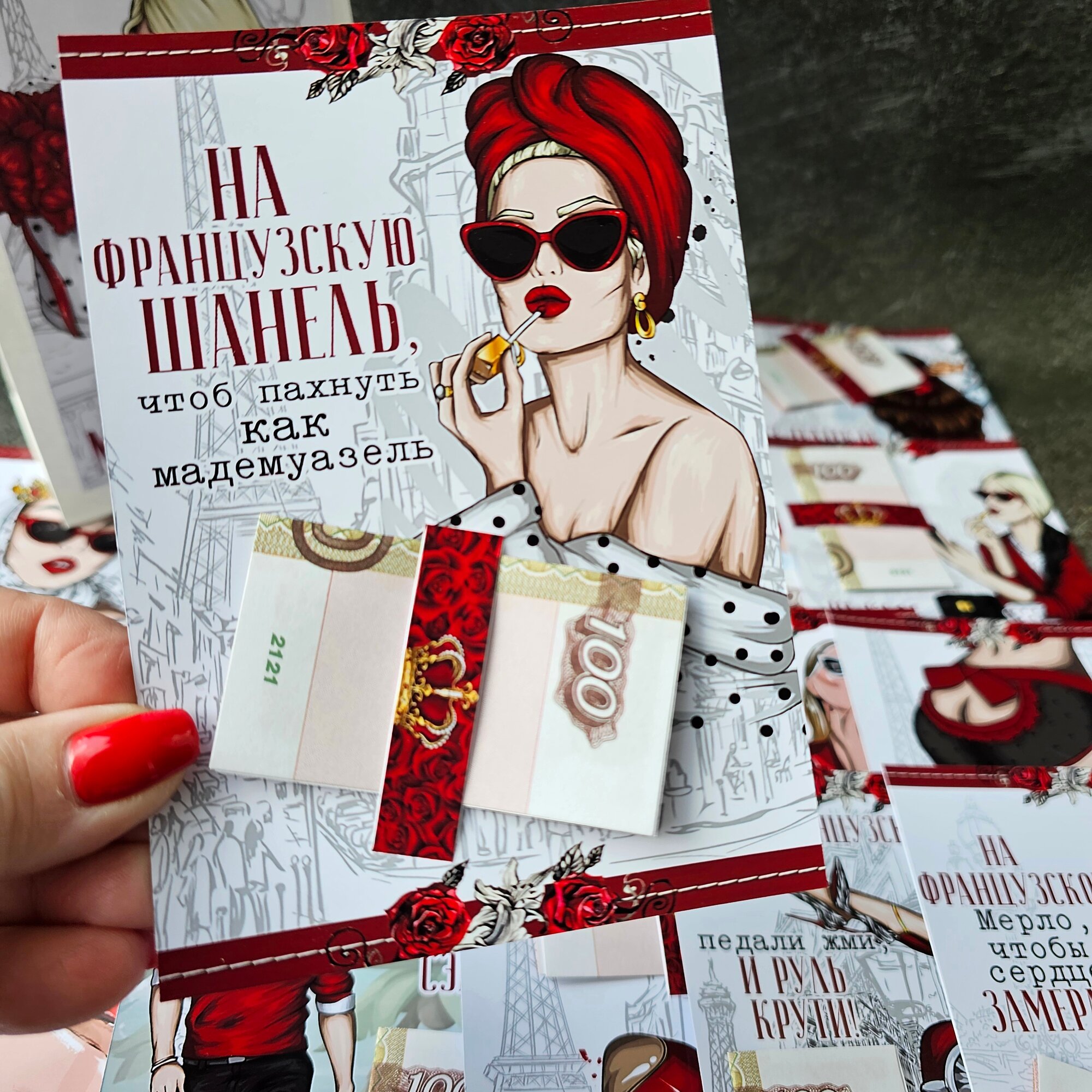 Женский набор открыток для денег "аля де Париж" с юмором 20 штук интересное: