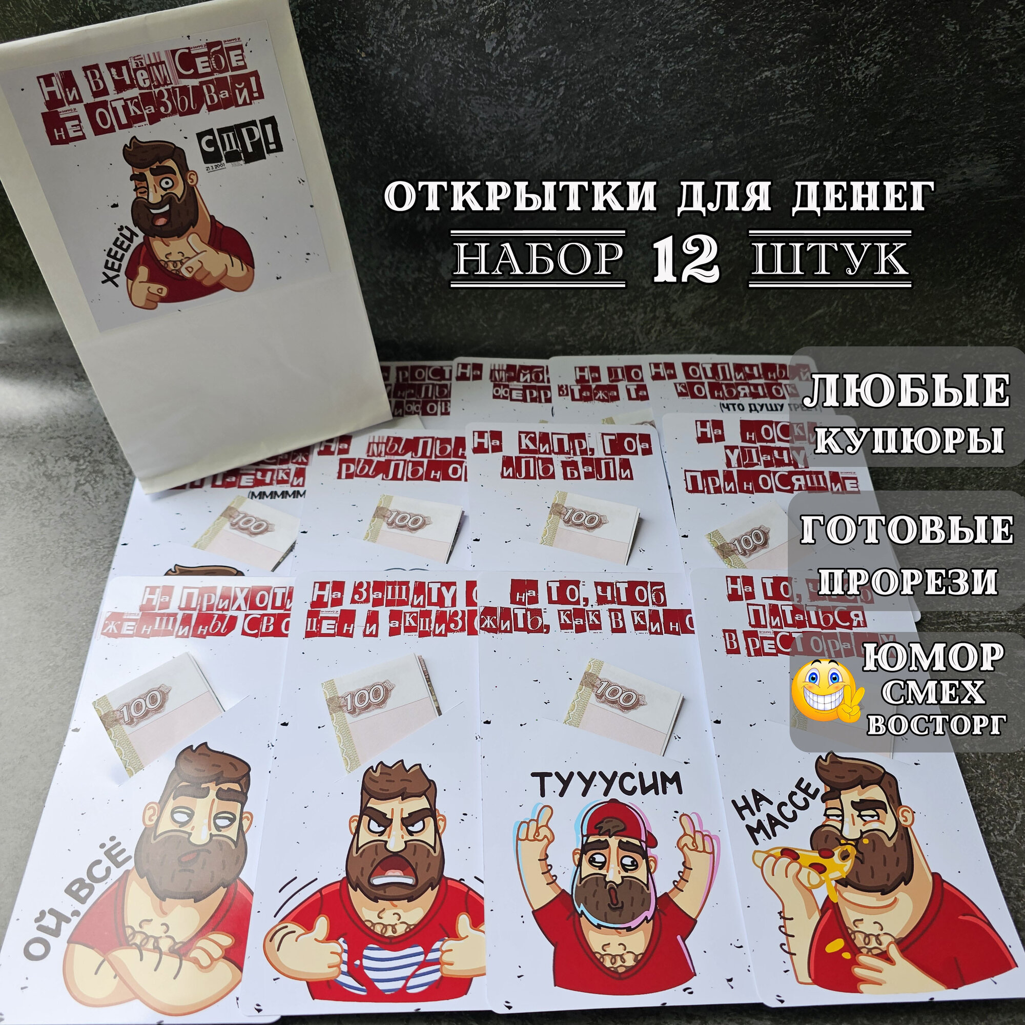 Купить Открытки для денег "Бро" Конверт для денег с юмором мужчине на День рождения Набор 12 штук