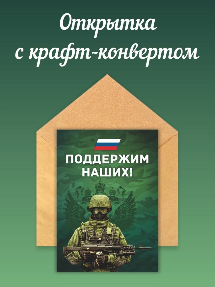 Открытка "Амарант" с крафтовым конвертом " Поддержим наших, своих не бросаем!" 1 шт интересное: