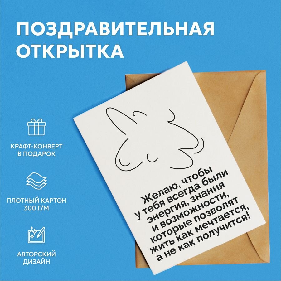 Купить Открытка оригинальная с пожеланиями 10х15 см (Жить как мечтается)