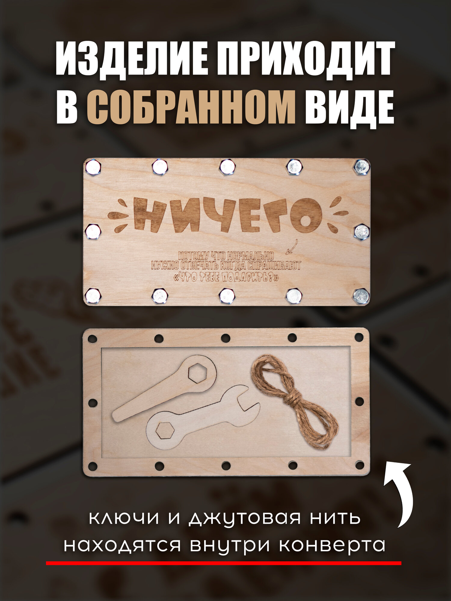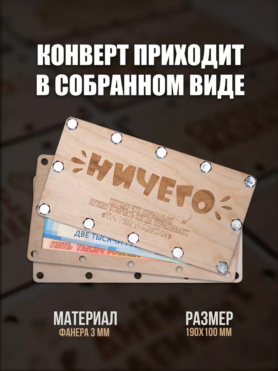 Ниже Вы можете прочитать отзывы на Деревянный конверт "ничего" на болтах, ознакомится с подробными характеристиками, посмотреть интересные обзоры и фотографии на Деревянный конверт "ничего" на болтах.