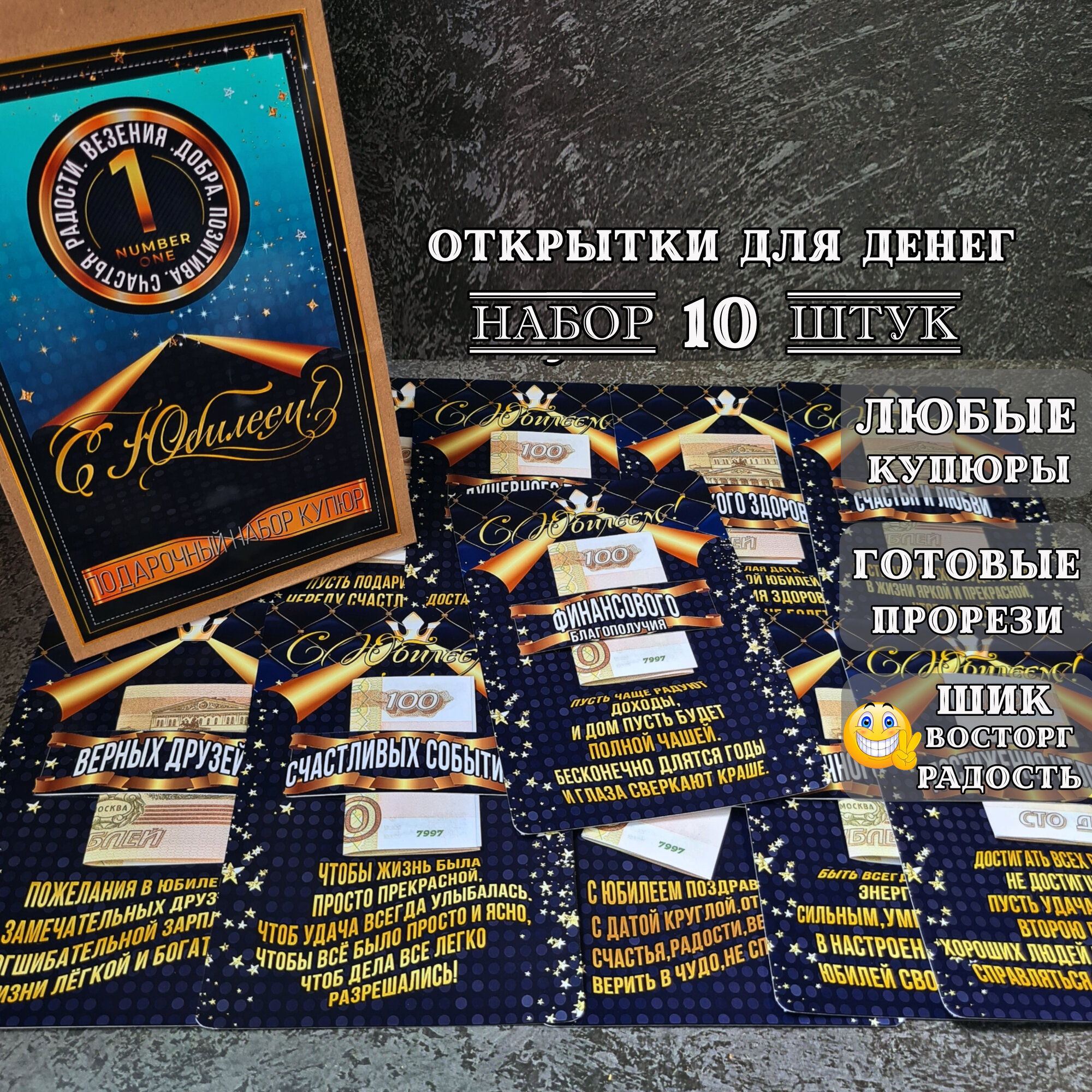 Купить Открытки для денег " С Юбилеем !" 10штук Конверт для денег мужчине