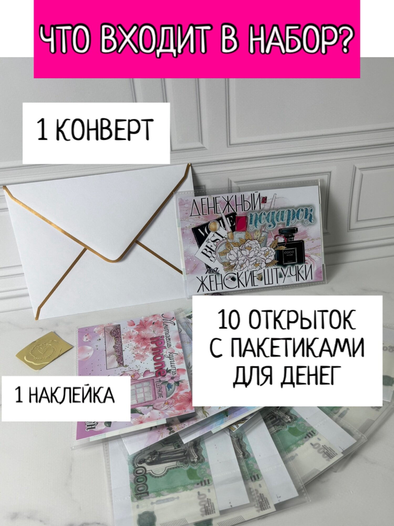Конверт-открытка "Карточки для денег", женские, оригинальные интересное: