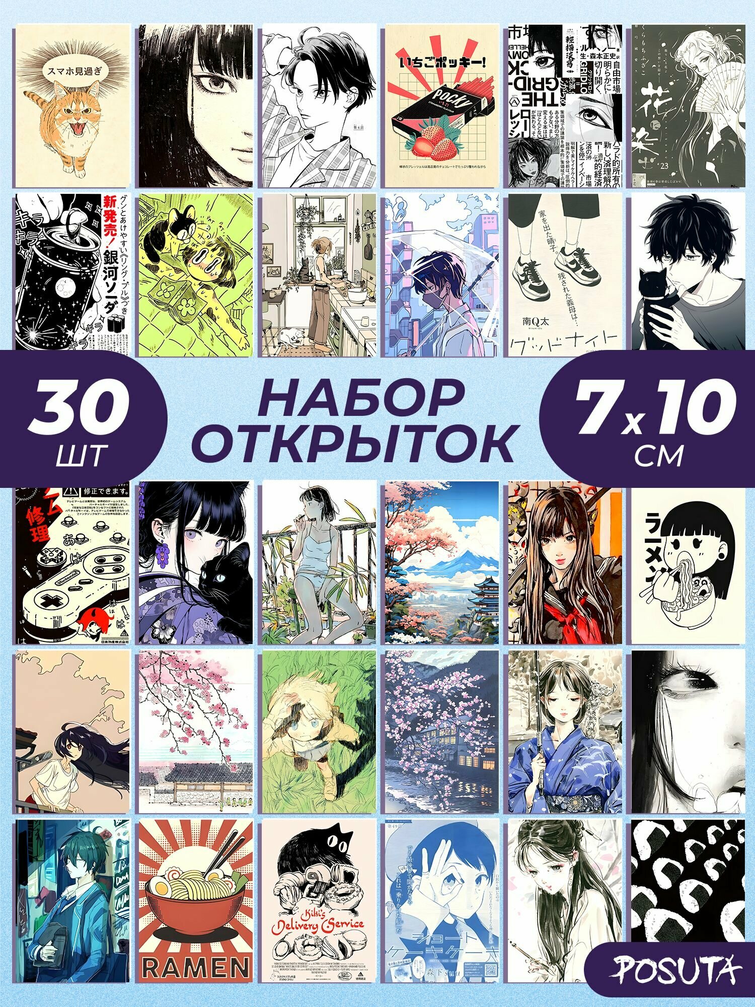 Набор открыток аниме интересное: