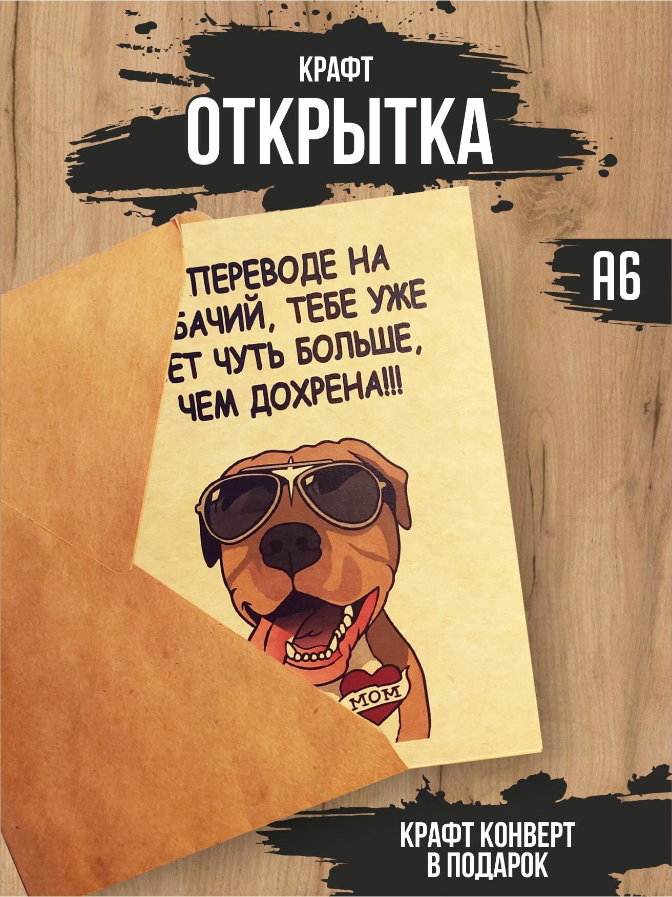 Крафт открытка "Чуть больше лет" с крафт конвертом интересное: