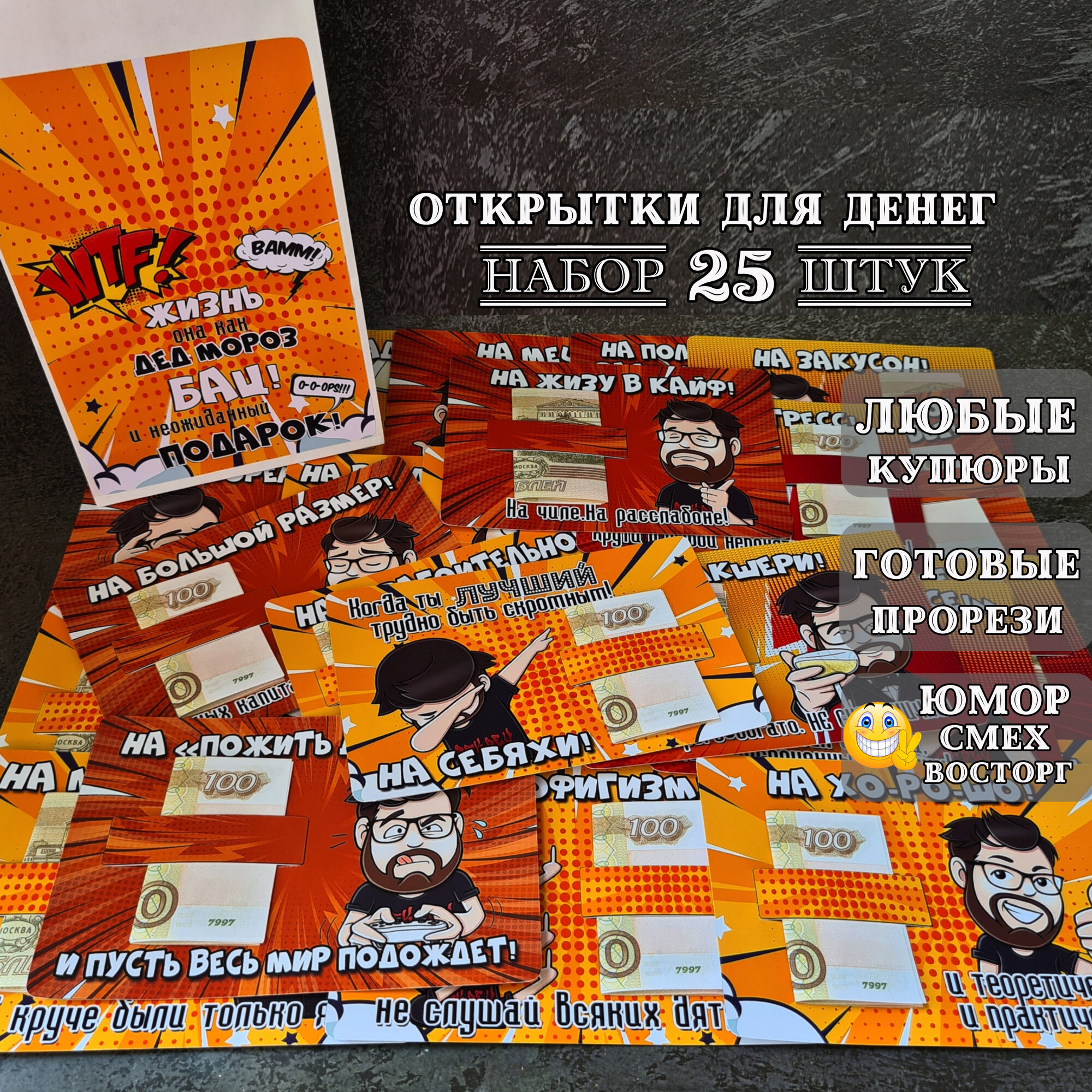 Купить Открытки для денег " Бородач " 25 шт Конверт для денег с юмором мужчине Набор
