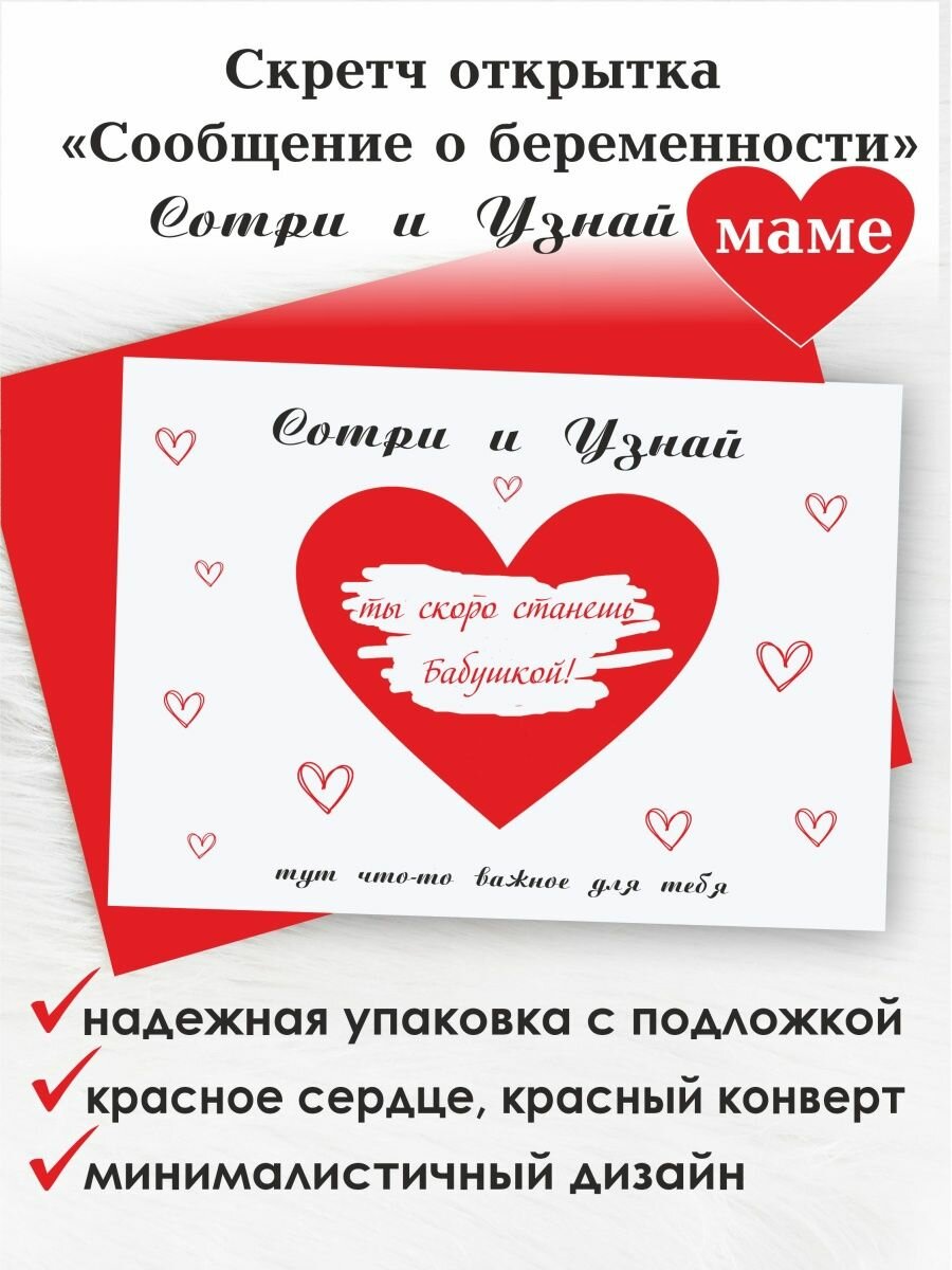 Ниже Вы можете прочитать отзывы на Открытка скретч сообщение о беременности ты станешь бабушкой, ознакомится с подробными характеристиками, посмотреть интересные обзоры и фотографии на Открытка скретч сообщение о беременности ты станешь бабушкой.