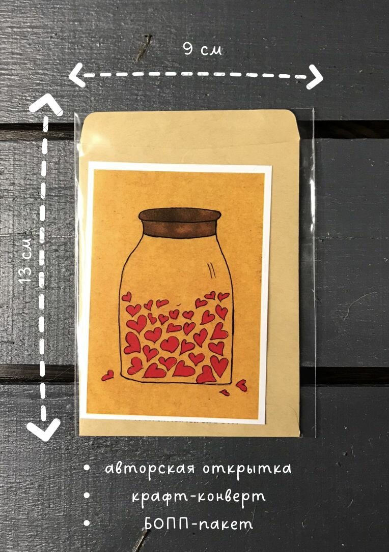 Купить Открытка "банка сердец" / дом Дикары / ОткрыткиВиВи