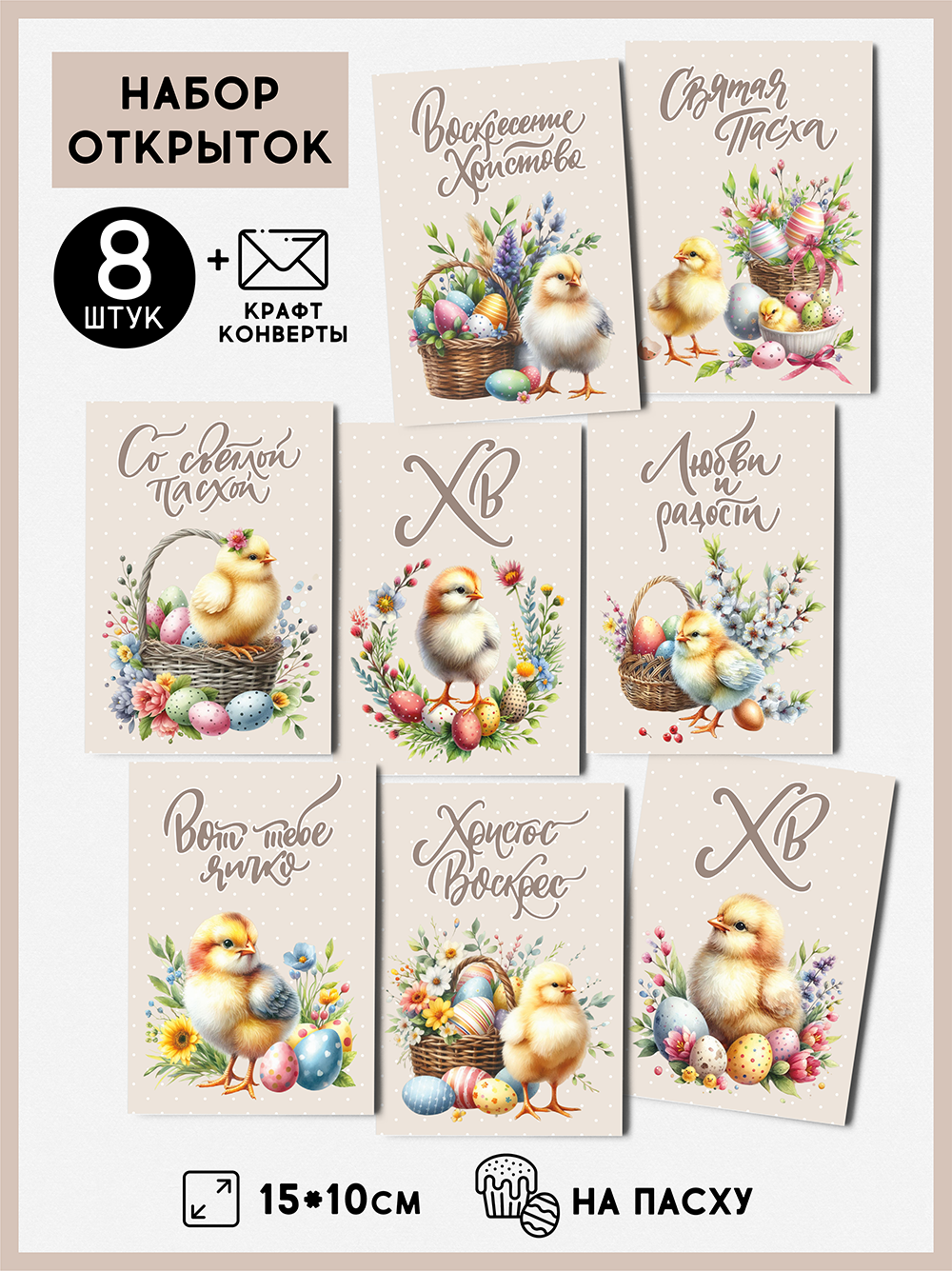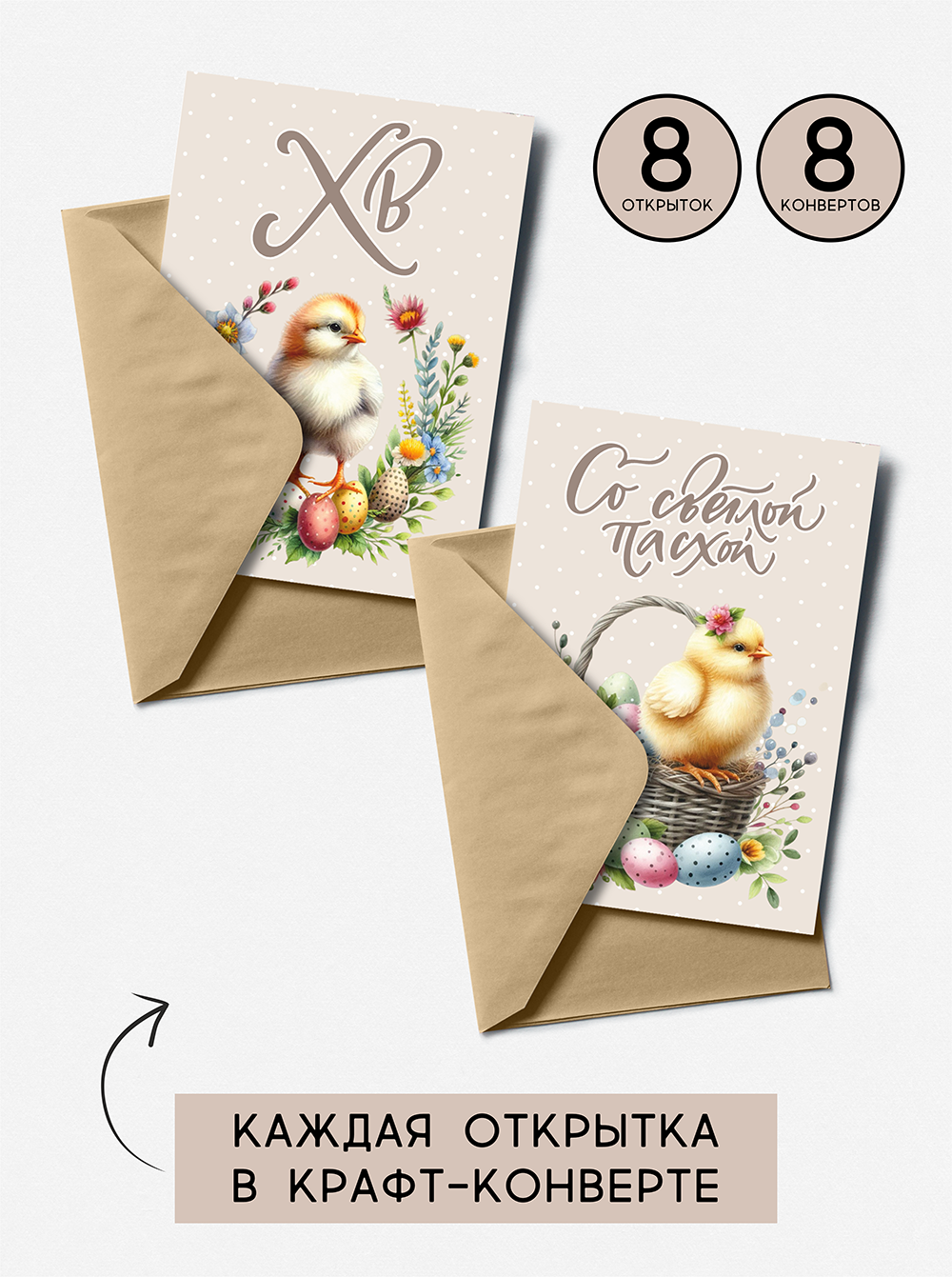 Набор открыток Пасха "Корзинки" с крафтовыми конвертами" от бренда QQ_Shopа интересное: