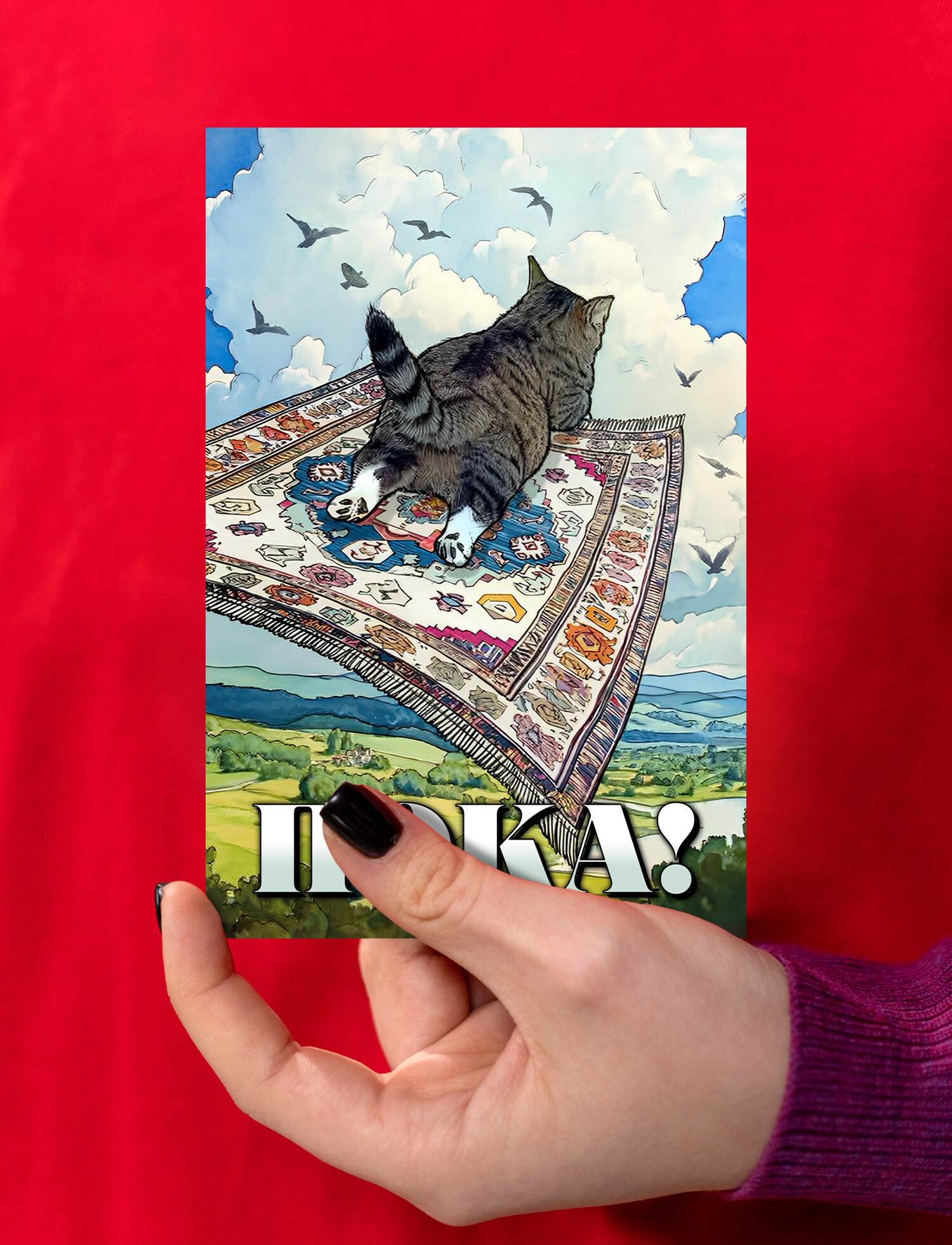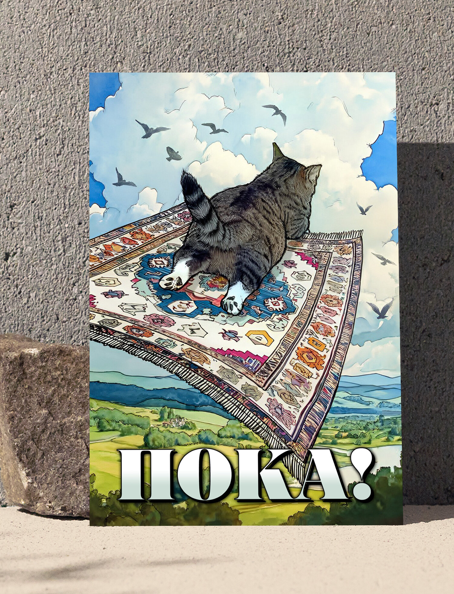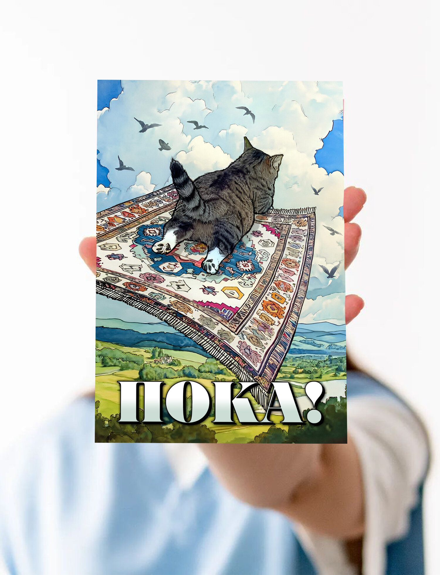Купить "Котик, пока!" открытка (подходит под рамку 10х15см, плотная бумага, живопись)