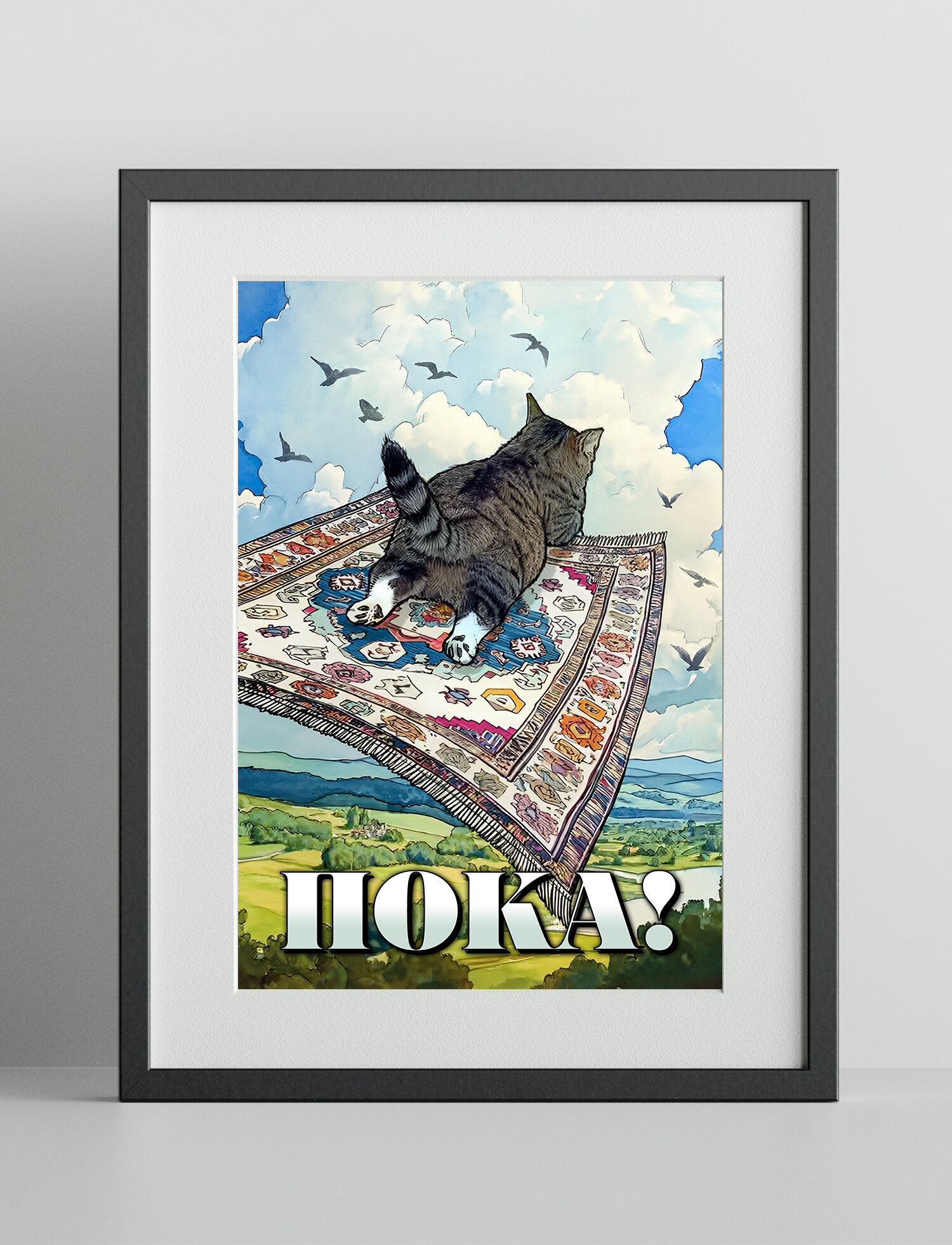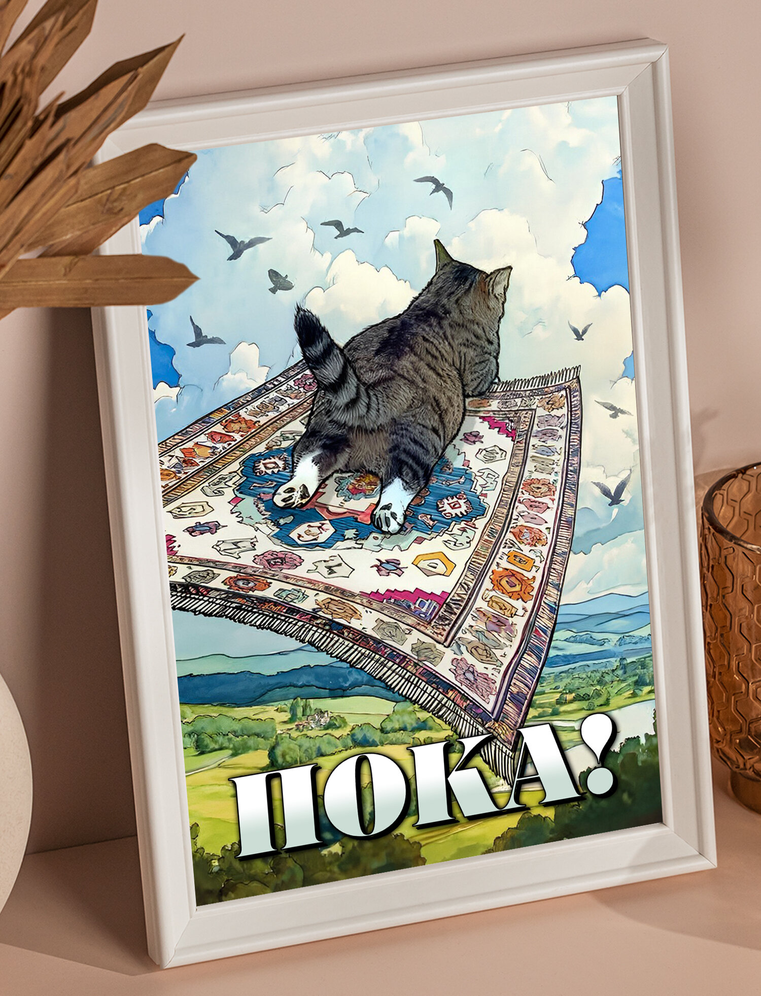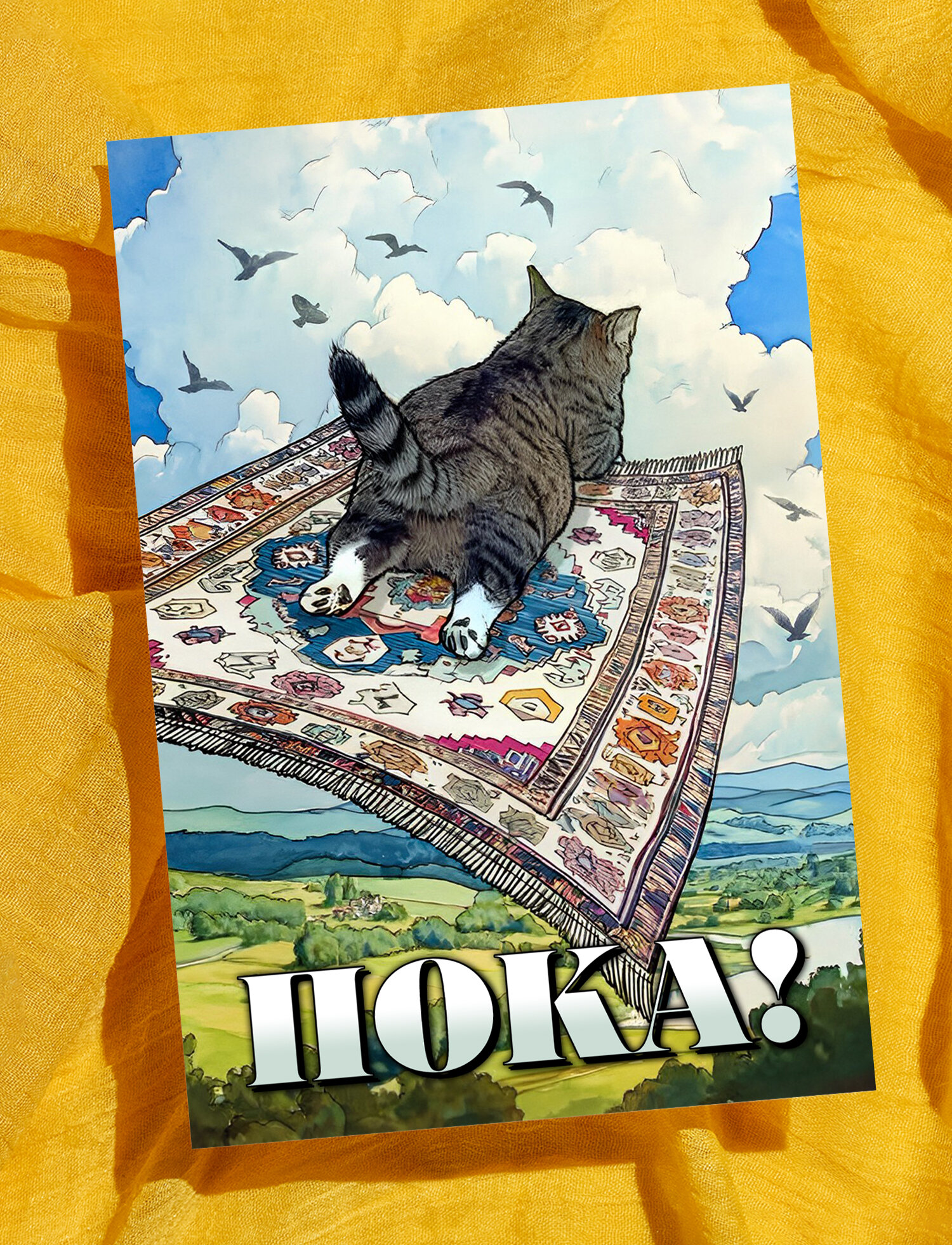 Купить "Котик, пока!" открытка (подходит под рамку 10х15см, плотная бумага, живопись)