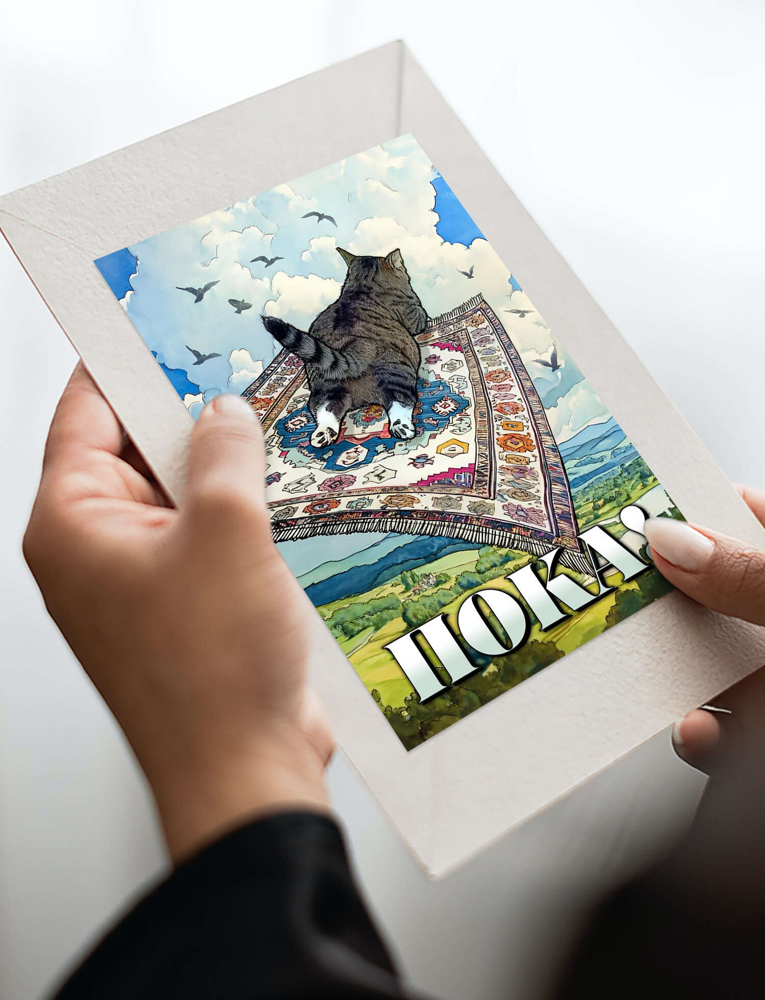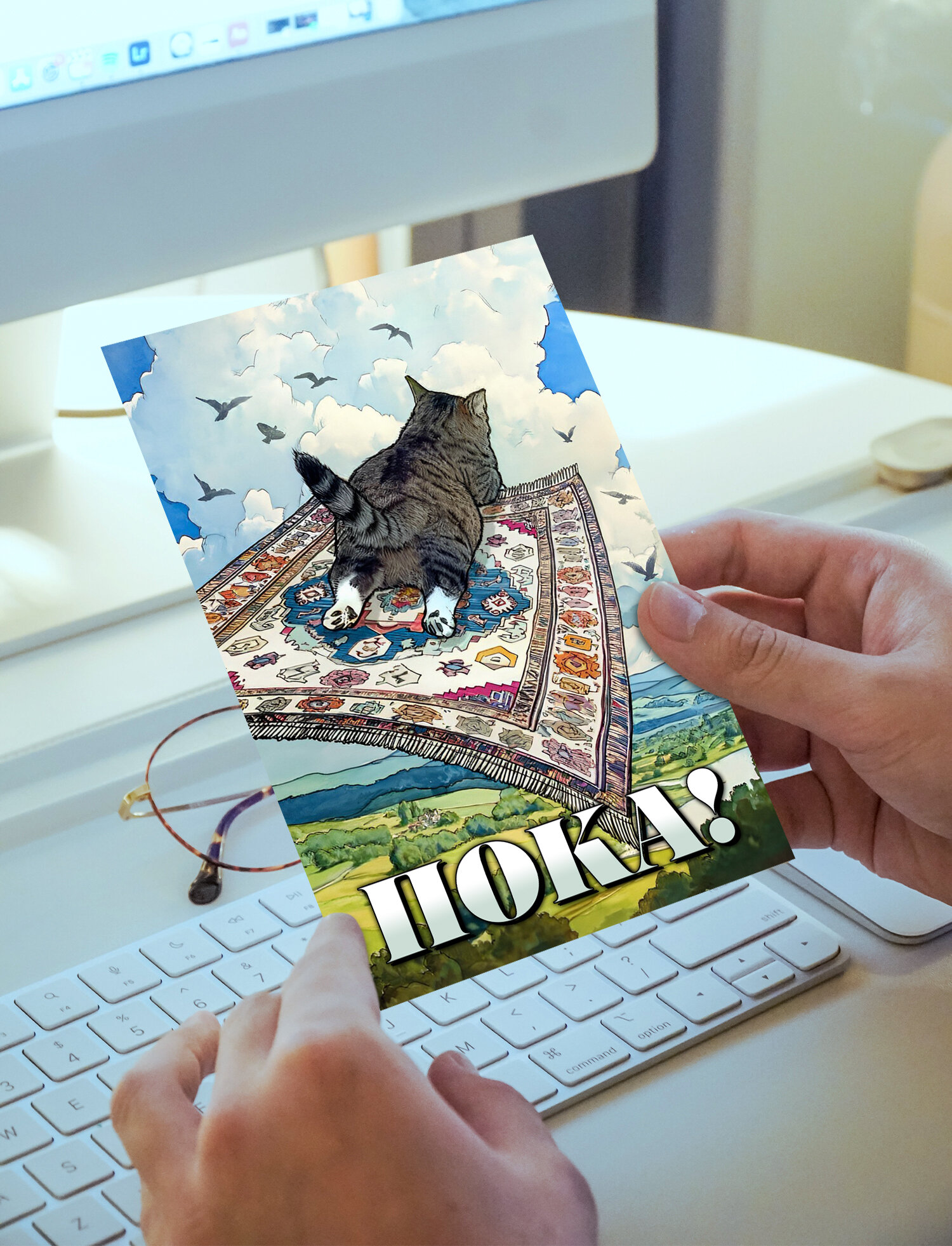 Дизайнерская открытка "Мяу" (авторский креатив, стихотворение)