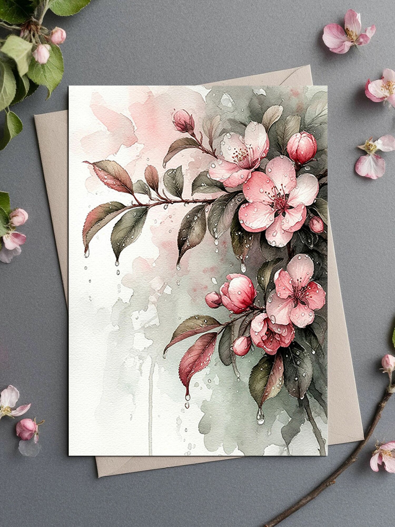 Купить Набор открыток "Цветущая ветка яблони, акварель", 10.5 см х 15 см, 4 шт, InspirationTime, на подарок и в коллекцию