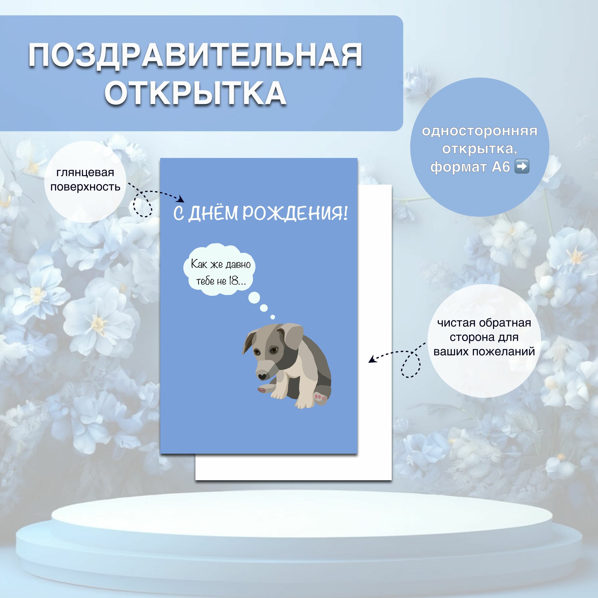 Купить Шуточная открытка "Тебе давно не 18" ко дню рождения, глянцевая