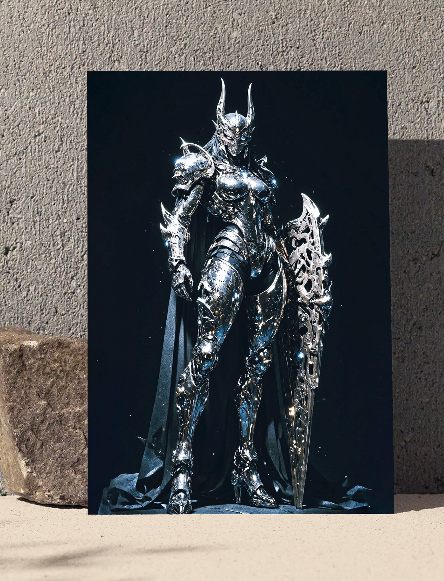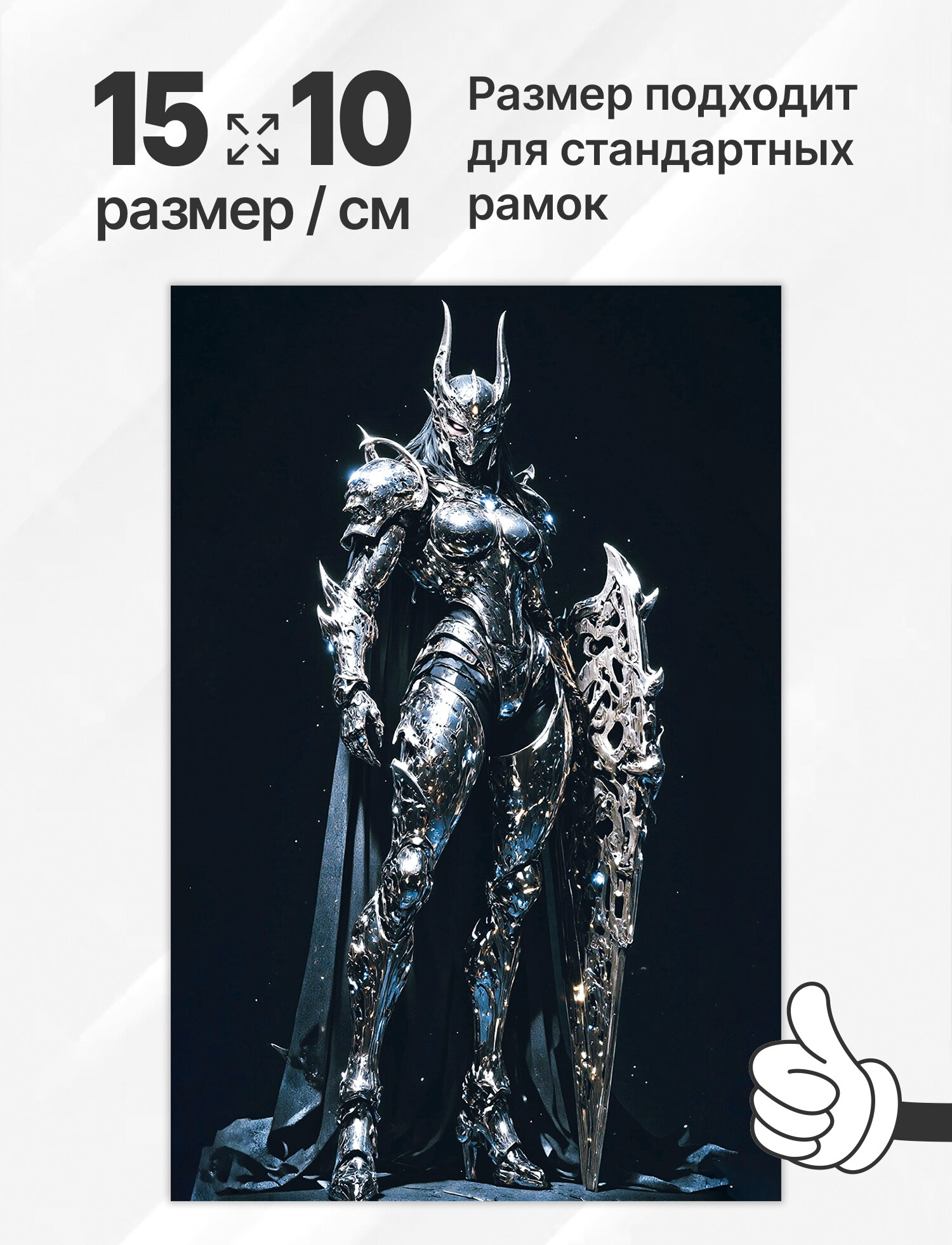"Девушка рыцарь II" открытка (подходит под рамку 10х15см, плотная бумага, киберпанк, рыцарь) интересное: