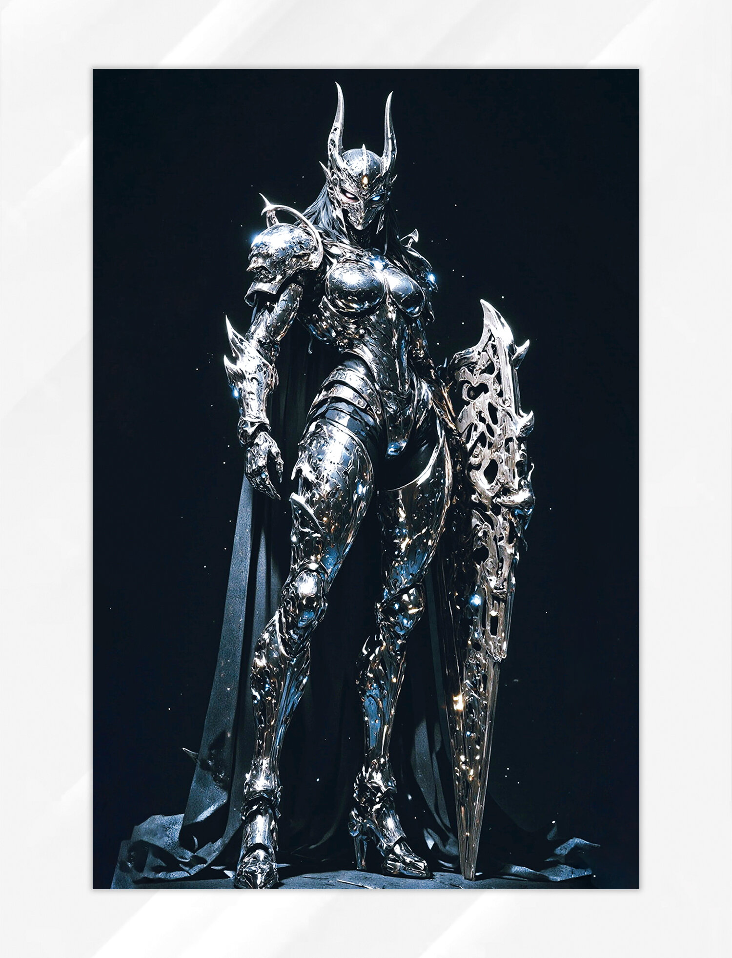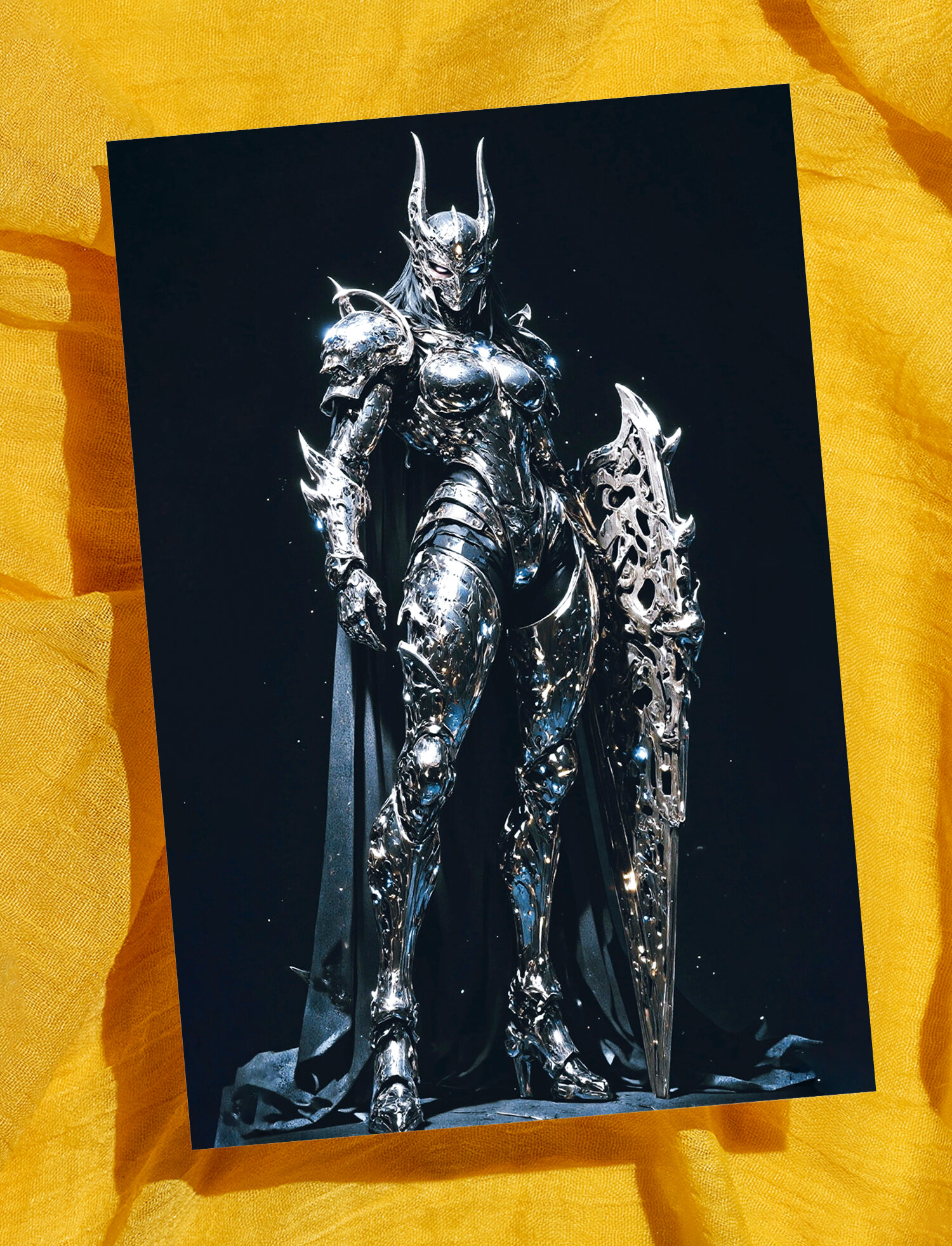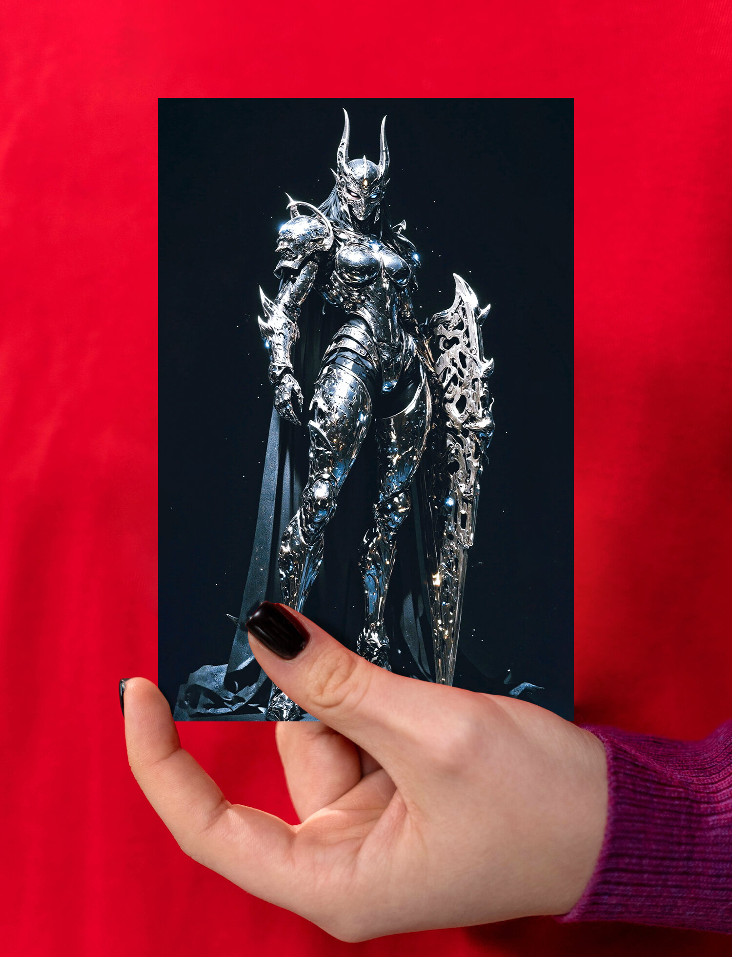 Купить "Девушка рыцарь II" открытка (подходит под рамку 10х15см, плотная бумага, киберпанк, рыцарь)