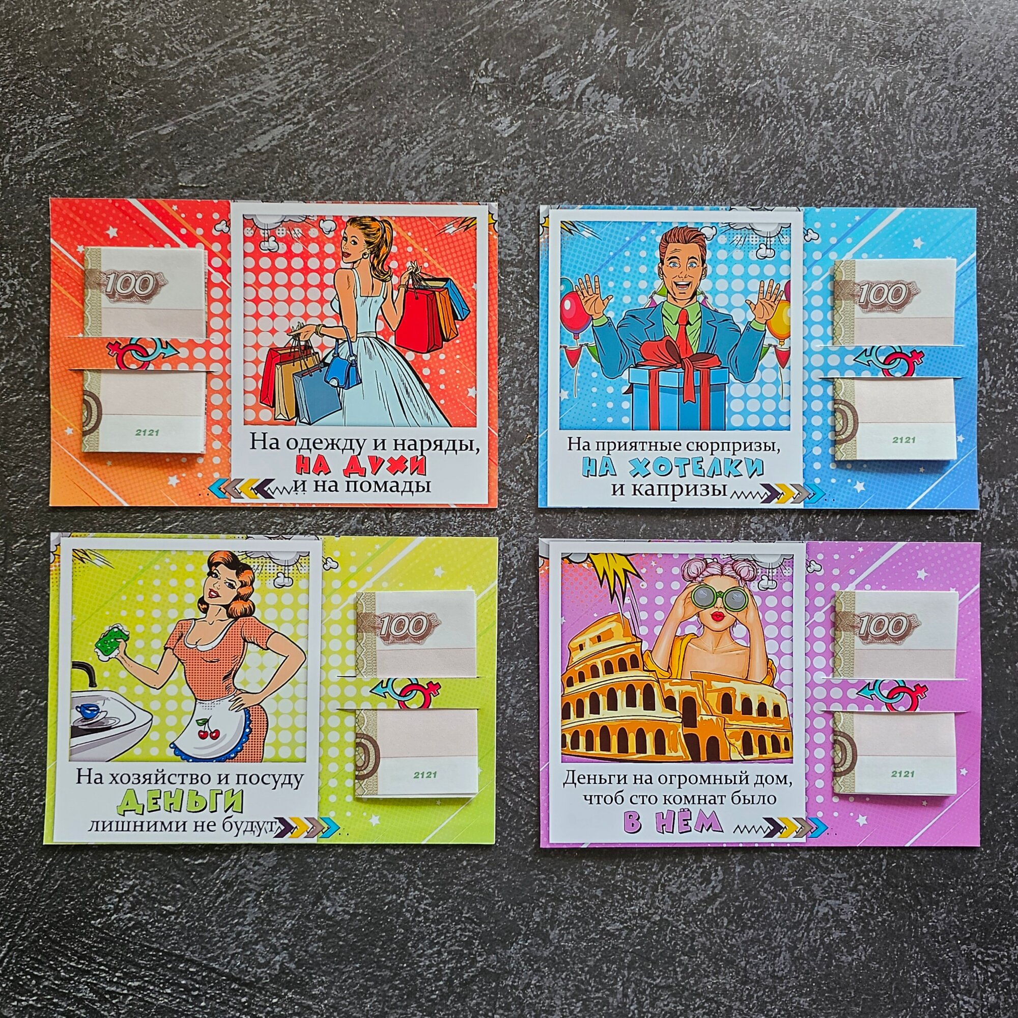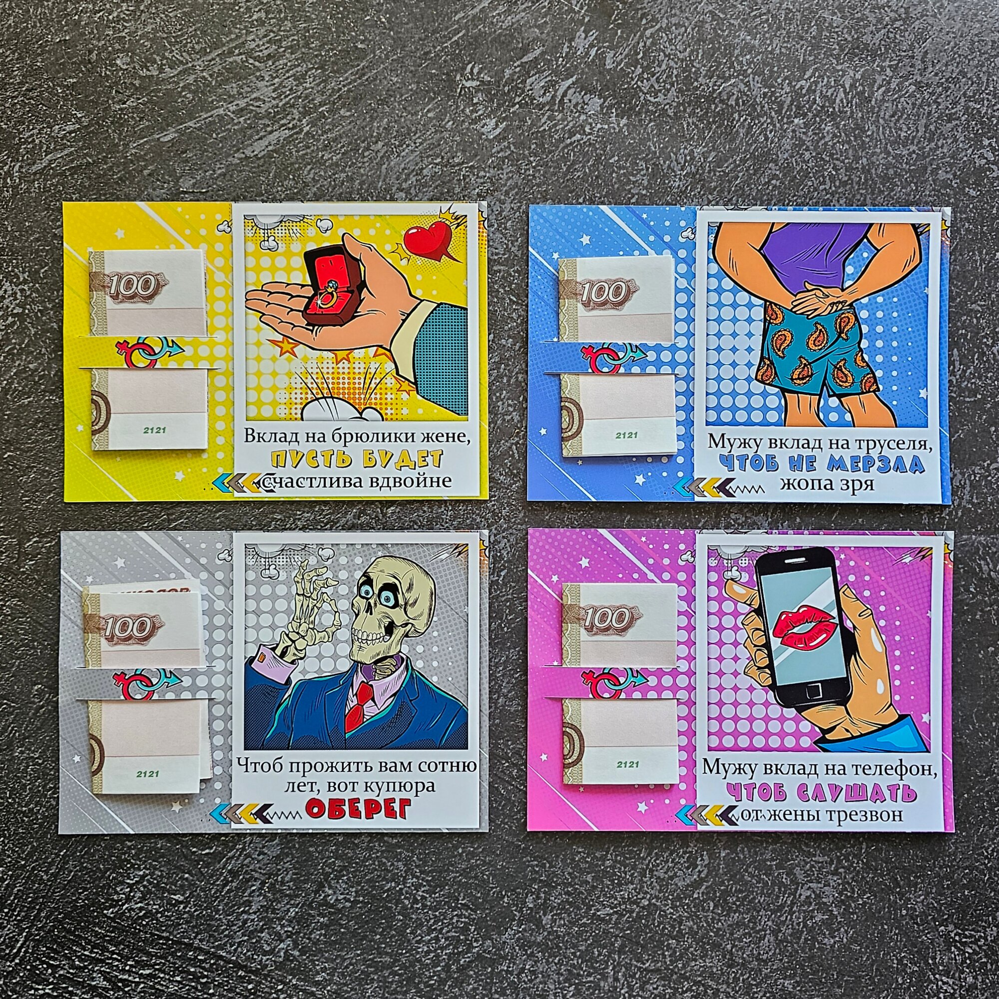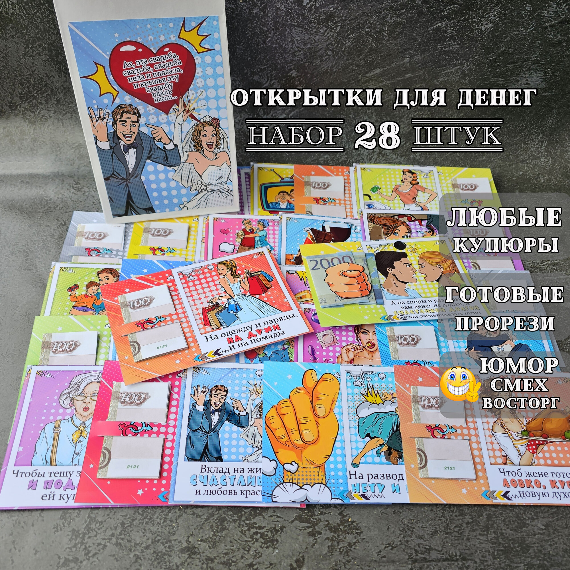 Купить Открытки для денег "Свадьба" с приколом Конверт для денег молодожёнам Набор 28 штук