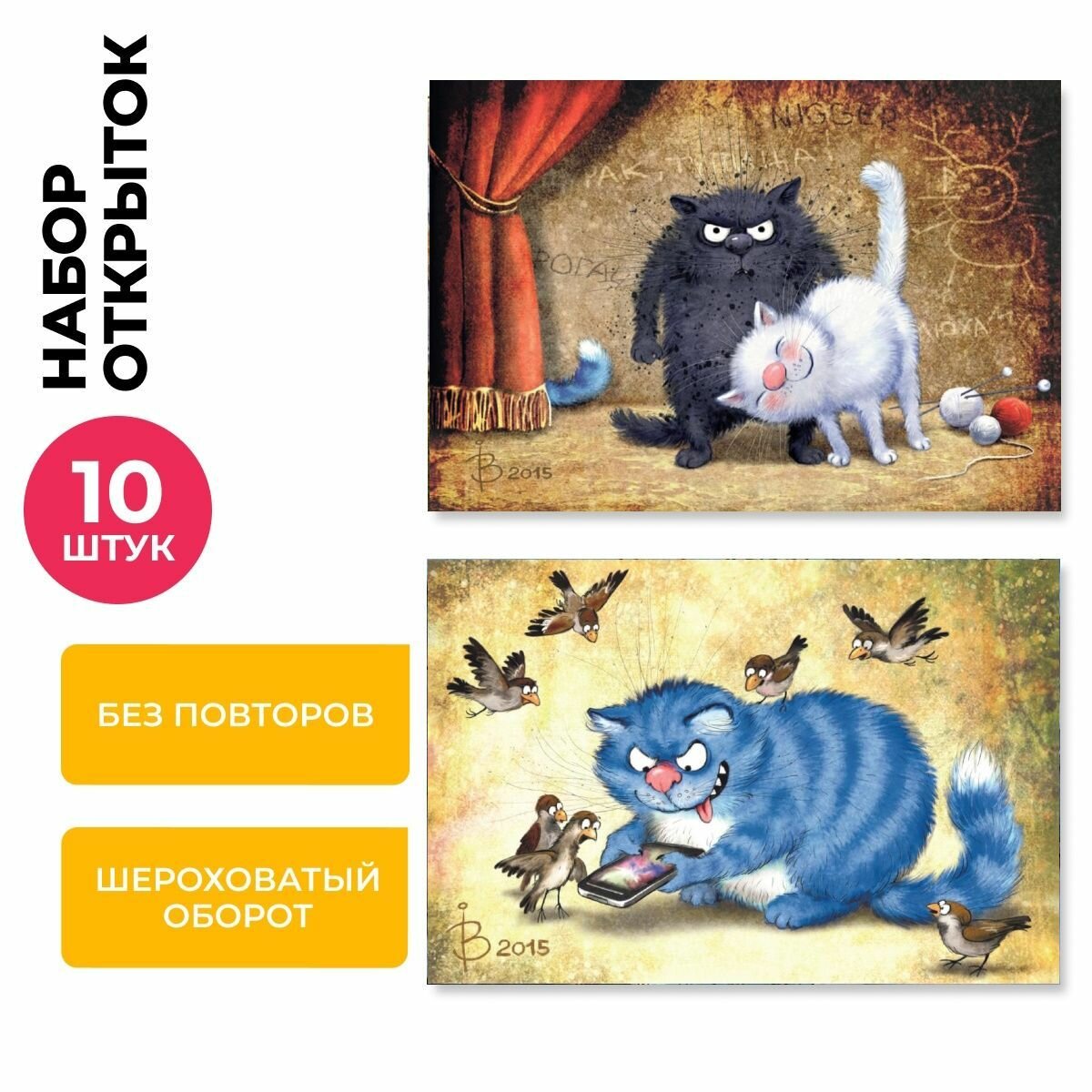 Купить Почтовые открытки для посткроссинга Синие Коты, художник Рина Зенюк