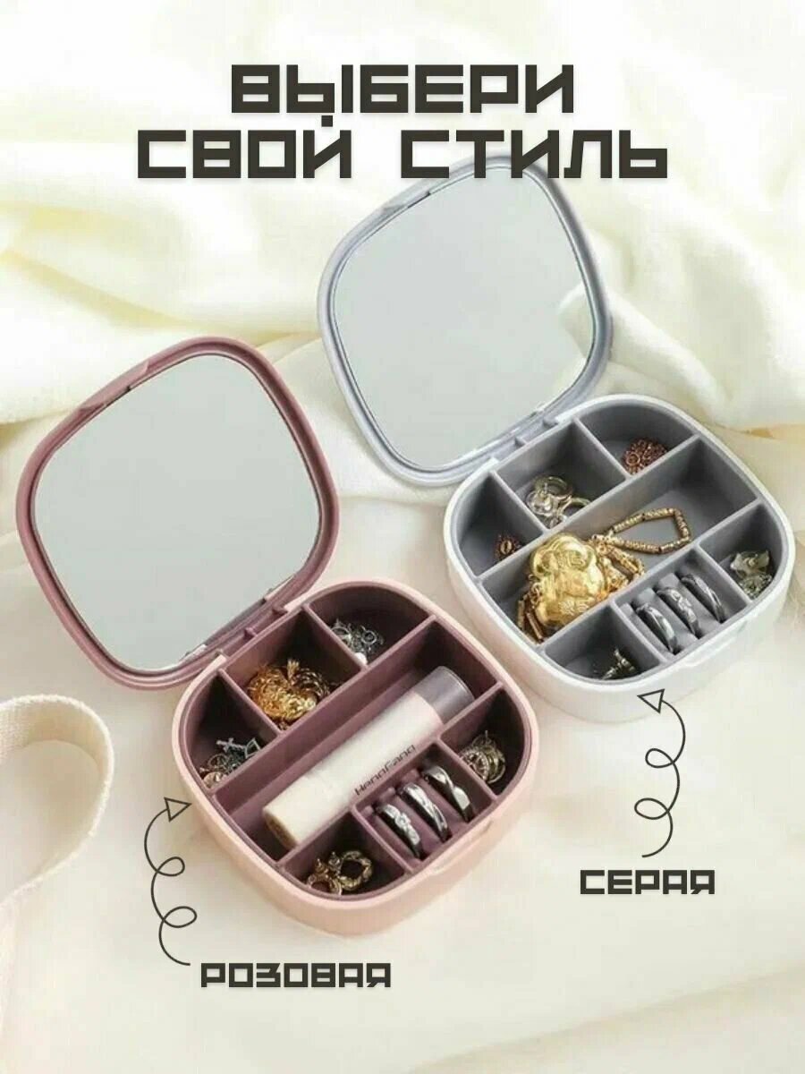Органайзер-шкатулка для украшений и бижутерии дорожный, с зеркалом, белый/серый интересное: