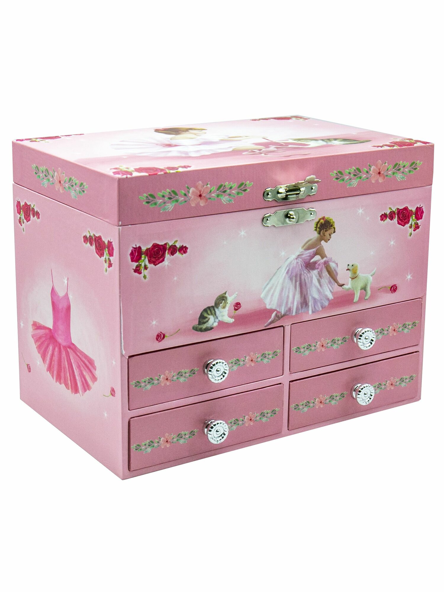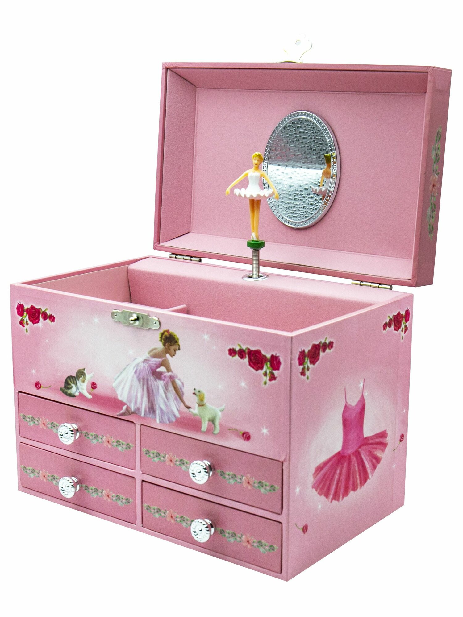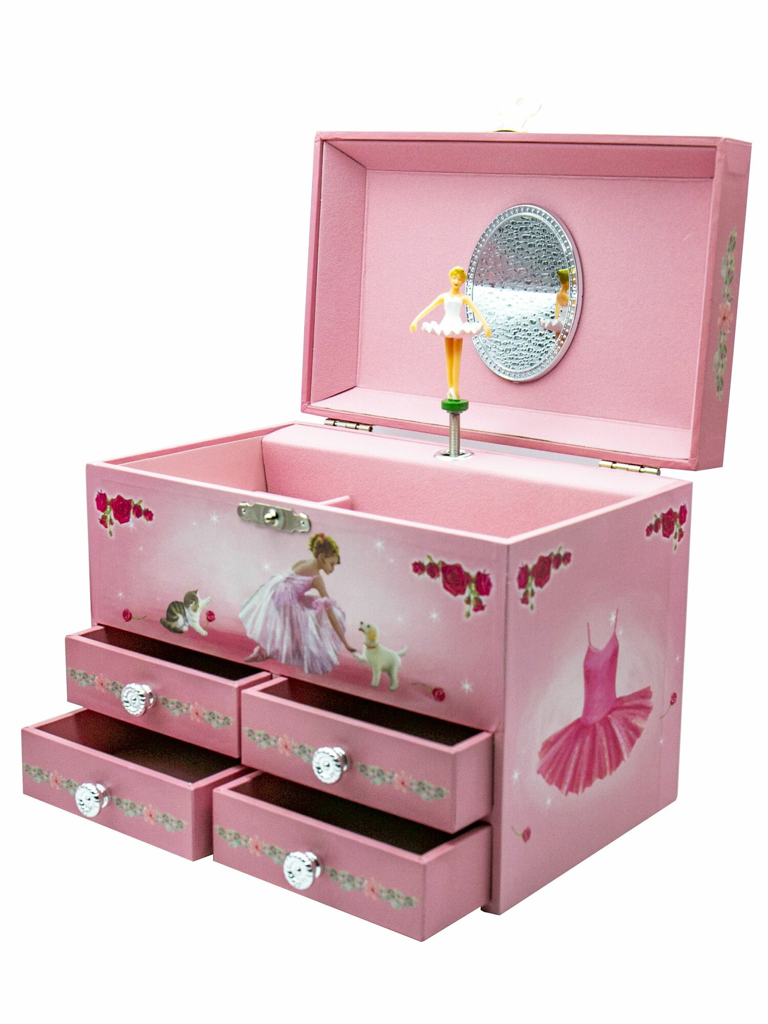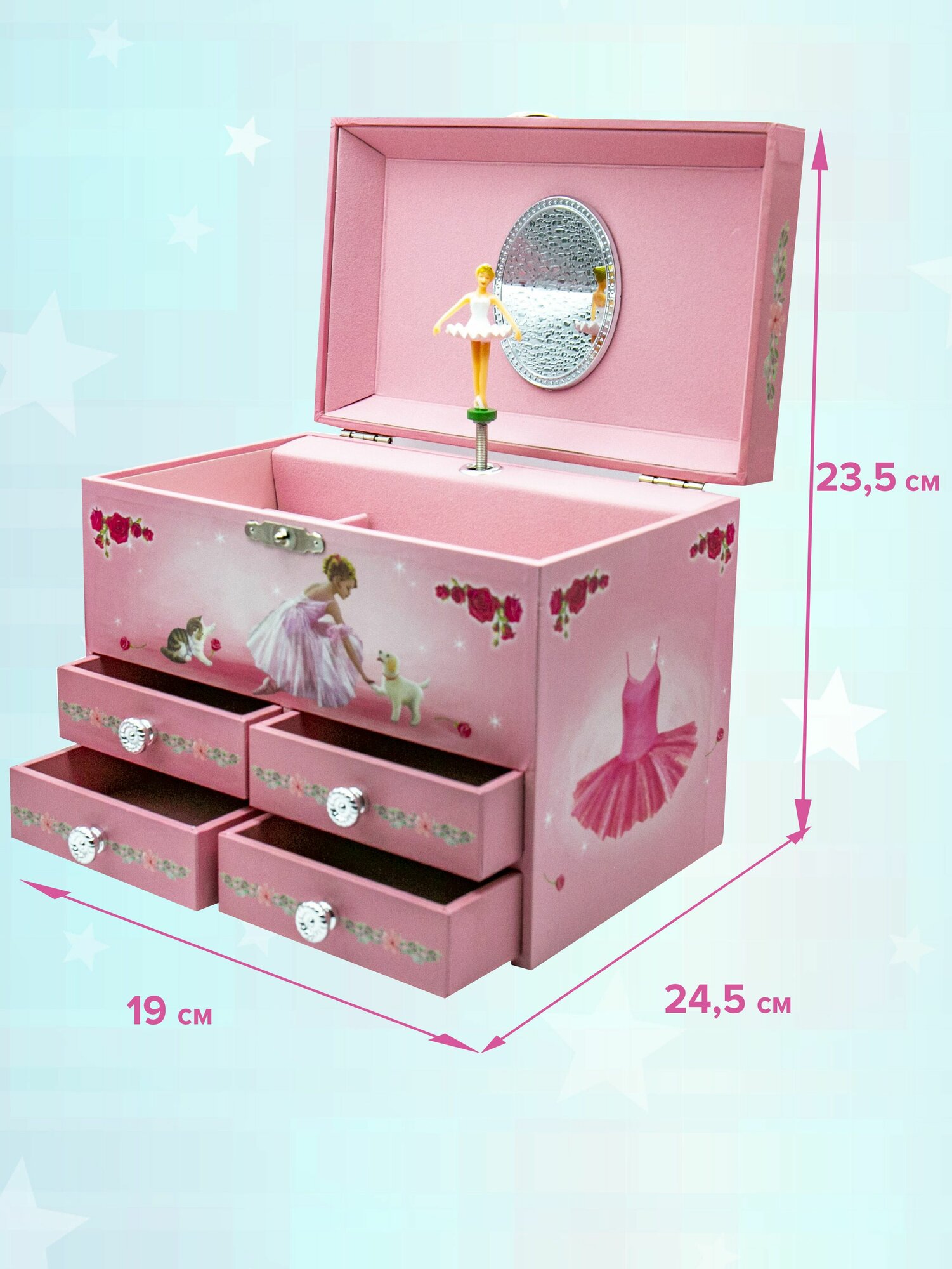 Ниже Вы можете прочитать отзывы на Музыкальная шкатулка с четырьмя ящиками для украшений с балериной, ознакомится с подробными характеристиками, посмотреть интересные обзоры и фотографии на Музыкальная шкатулка с четырьмя ящиками для украшений с балериной.