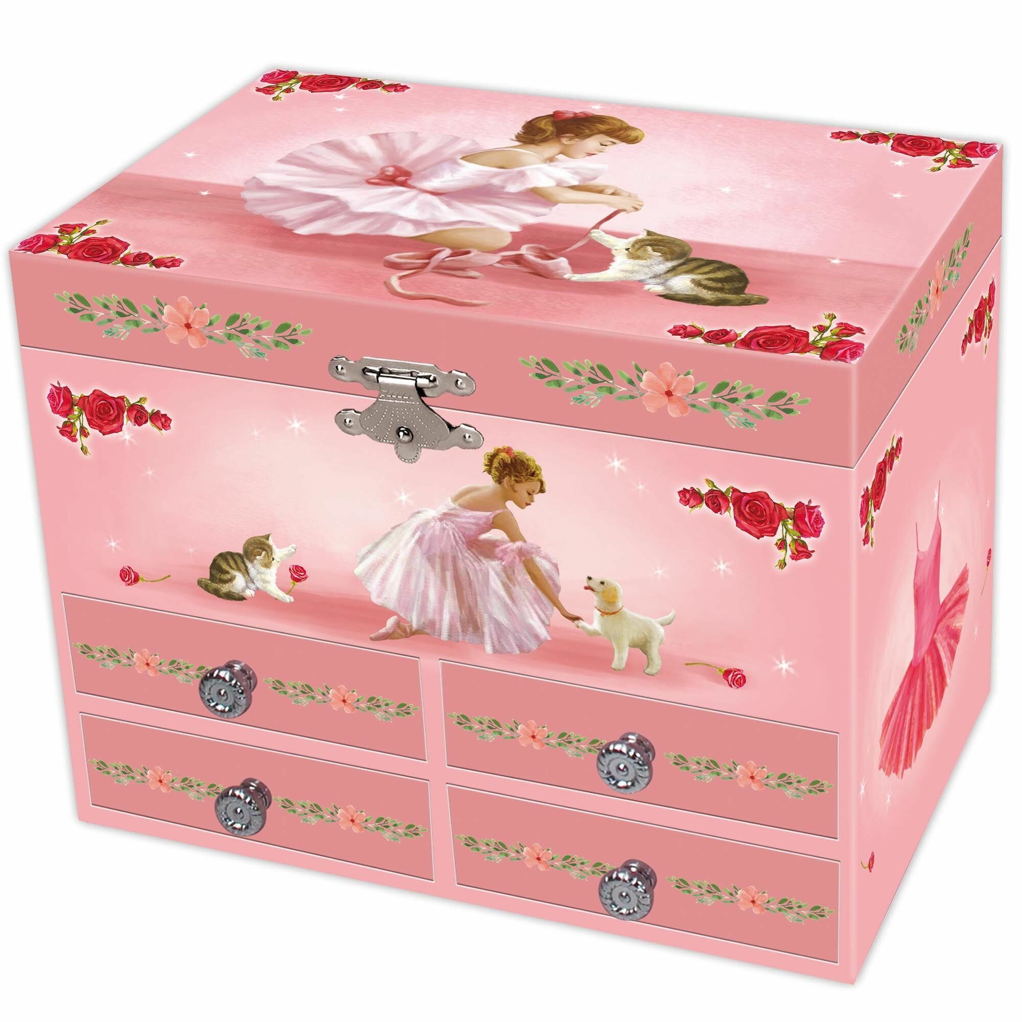 Купить Музыкальная шкатулка с четырьмя ящиками для украшений с балериной