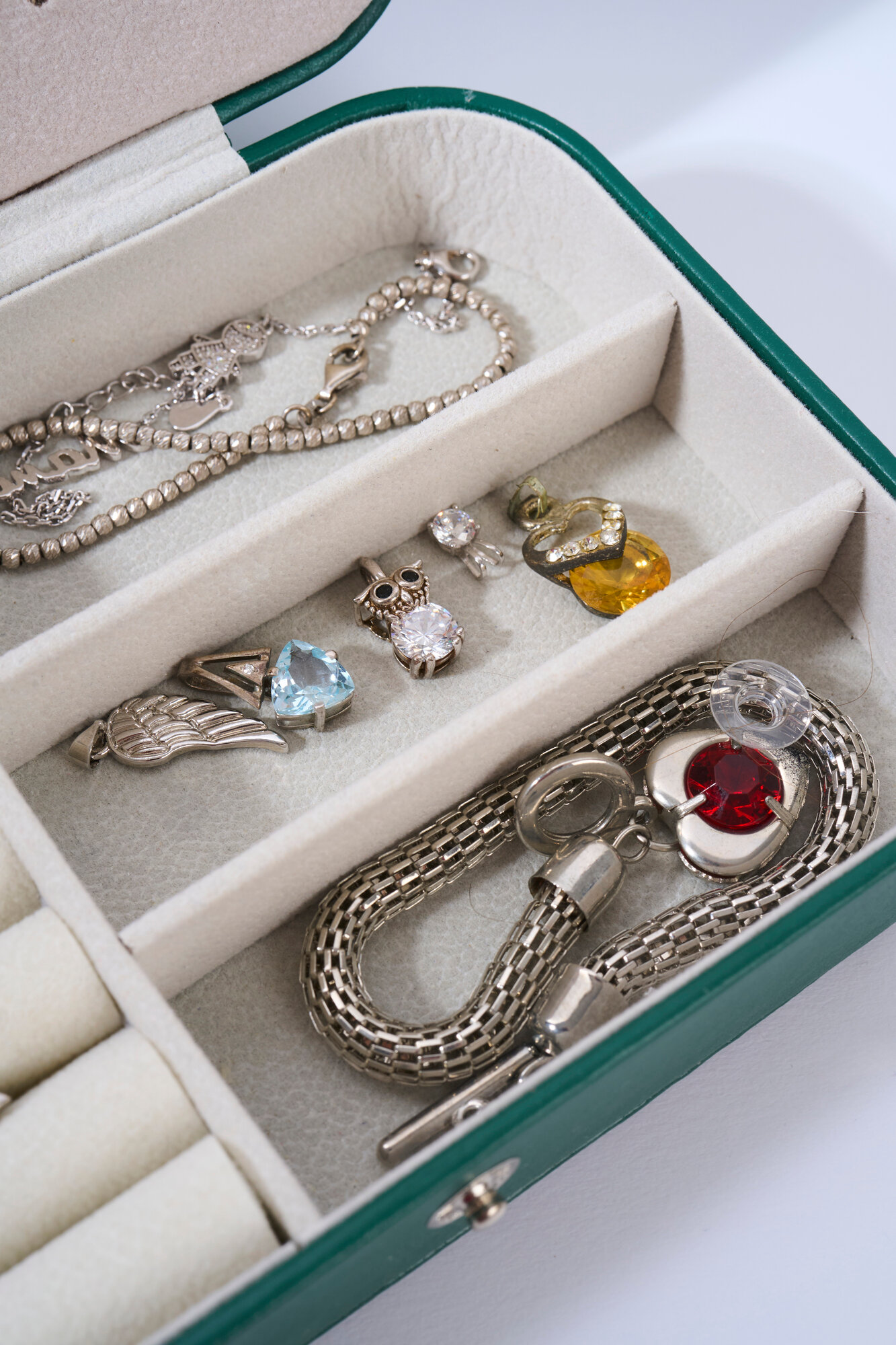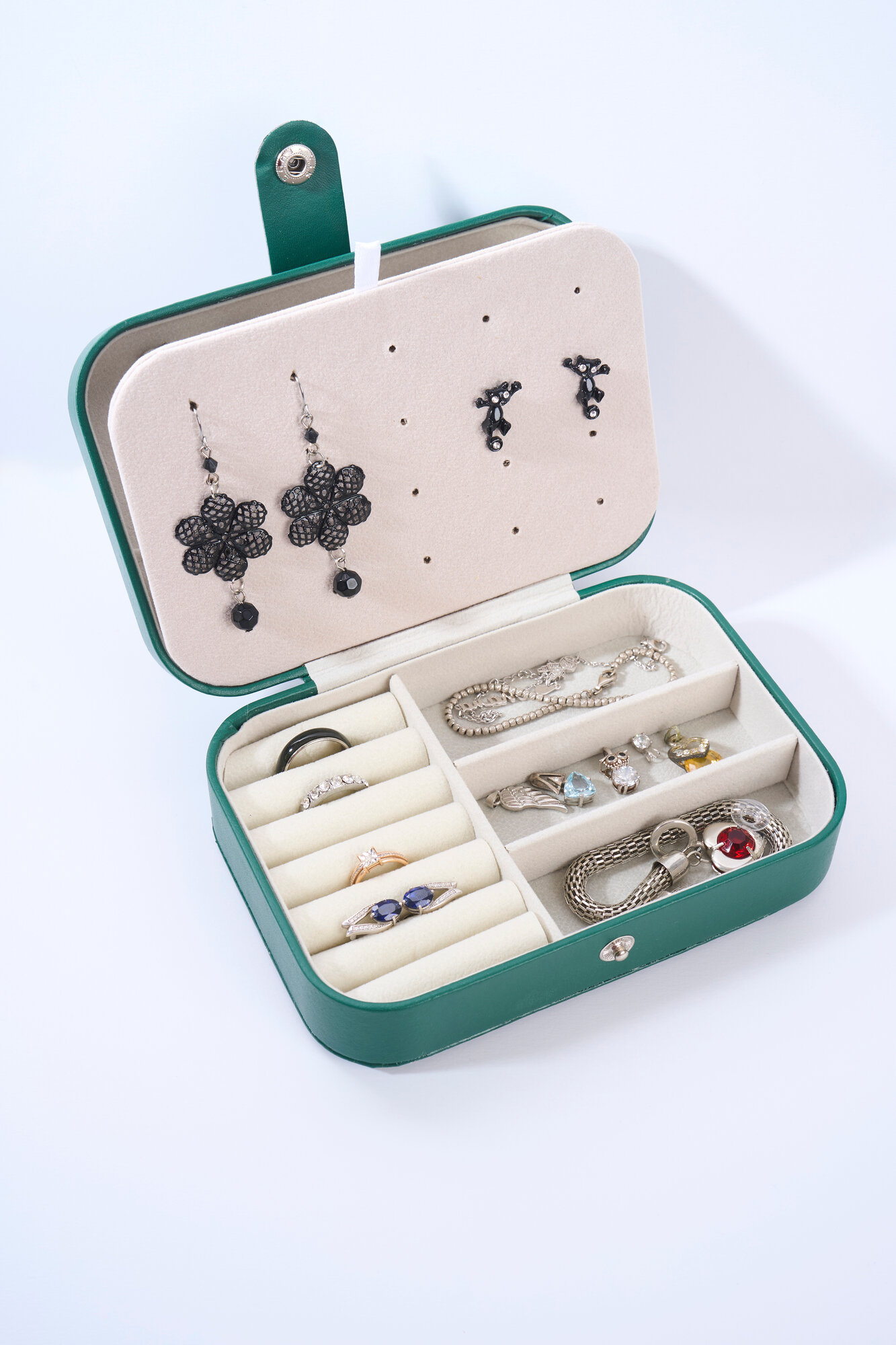 Купить Шкатулка-организатор для украшений, прямоугольная, Зеленая 16x10,8x5 см
