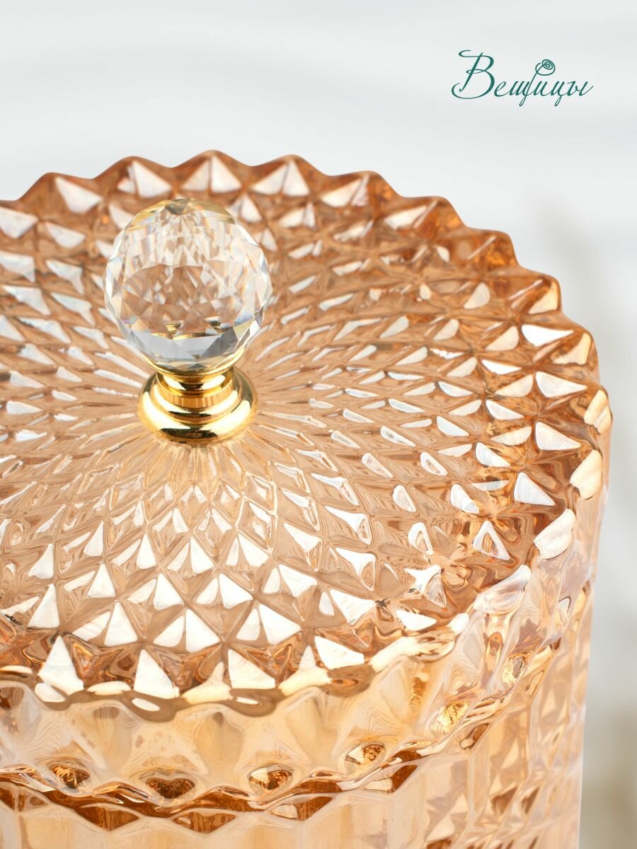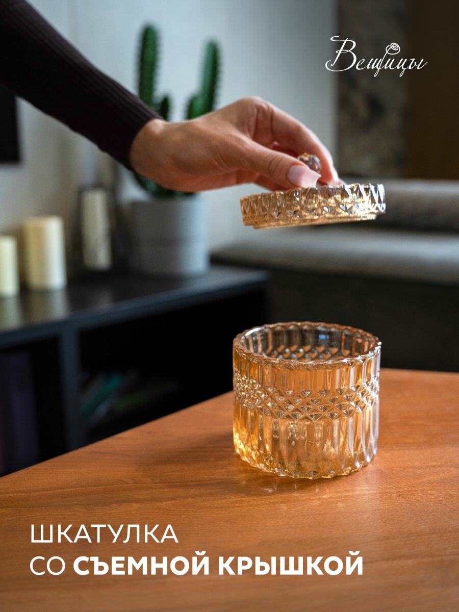 Шкатулка стеклянная с крышкой Вещицы / Для ювелирных украшений и декора / Цвет бежевый интересное: