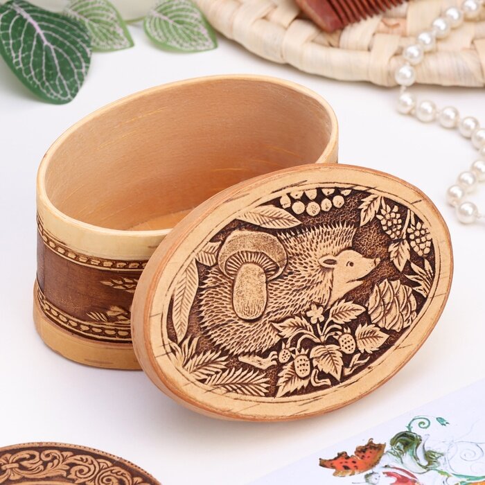 Шкатулка «Ёжик - чудак», овал, 12×8,5×6,5 см, береста 3312857 интересное: