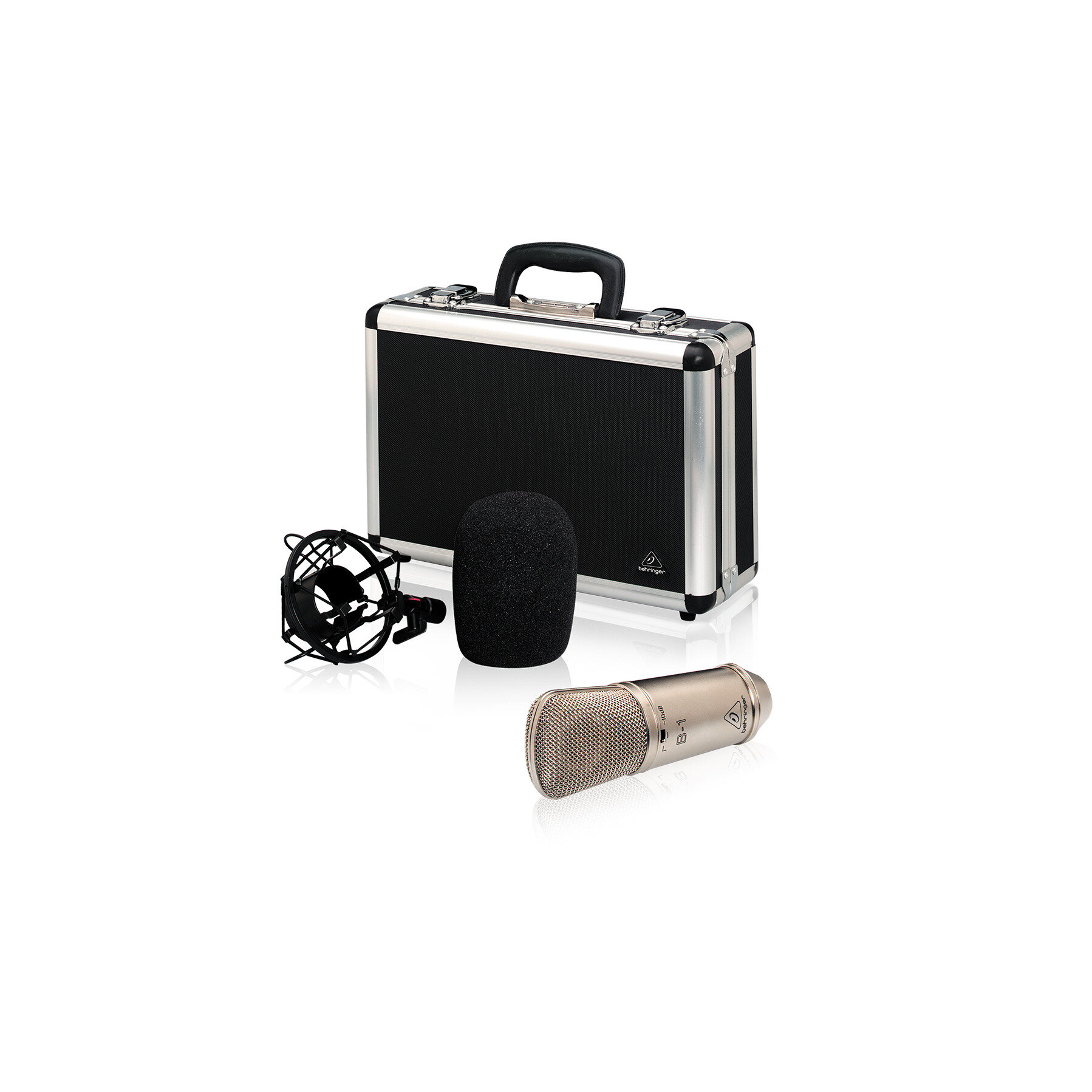 Behringer B-1 кардиоидный конденсаторный микрофон с диафрагмой 1", 20-20000Гц, аттенюатор -10дБ, держатель "паук", кейс